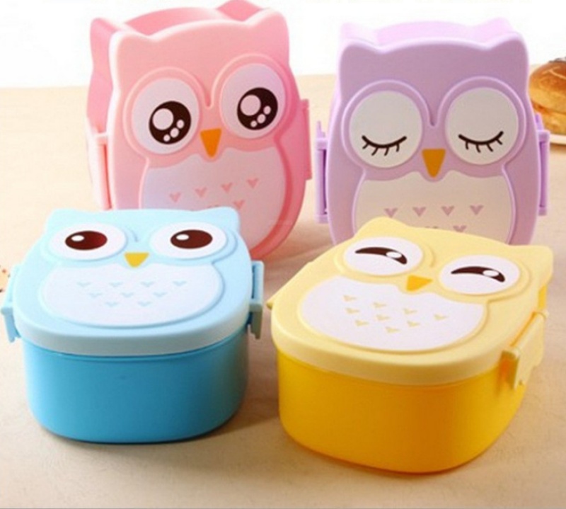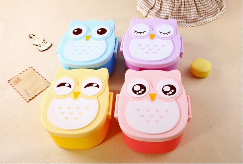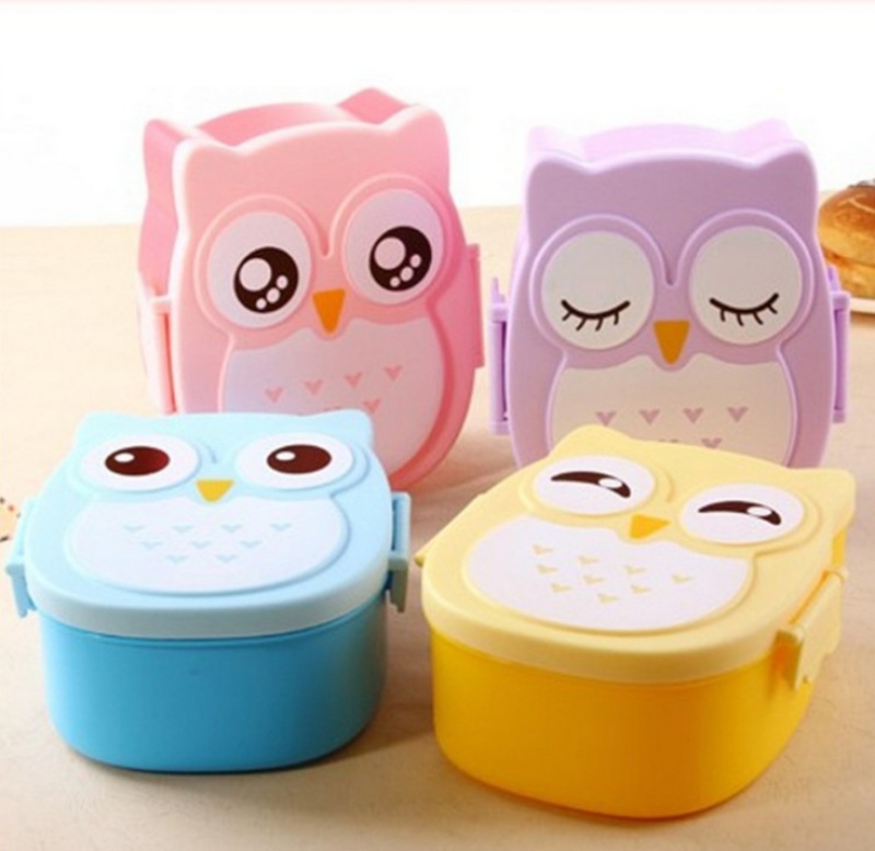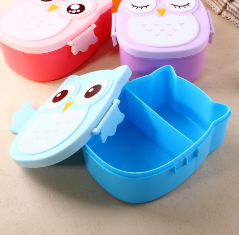 儿童饭盒猫头鹰餐盒 分格塑料学生微波便当盒