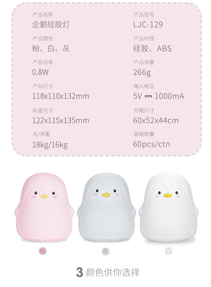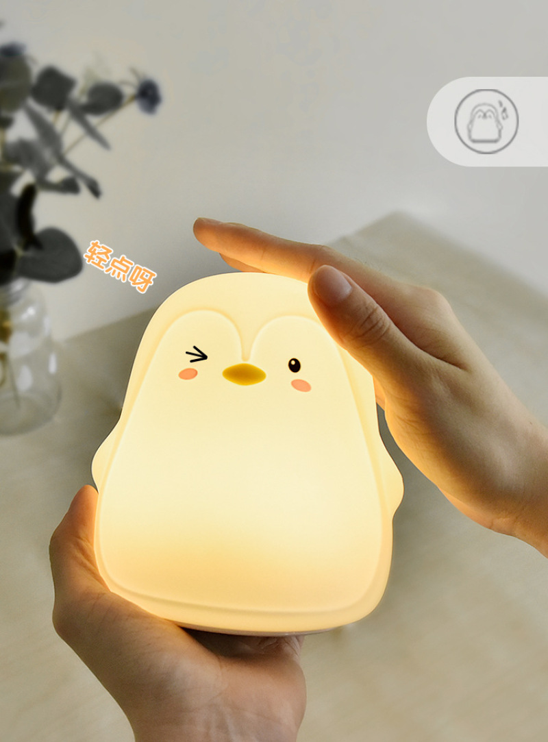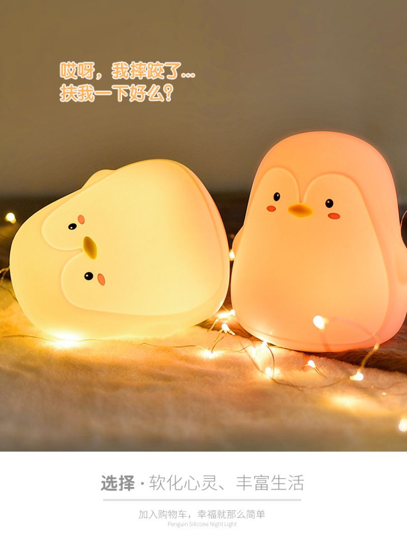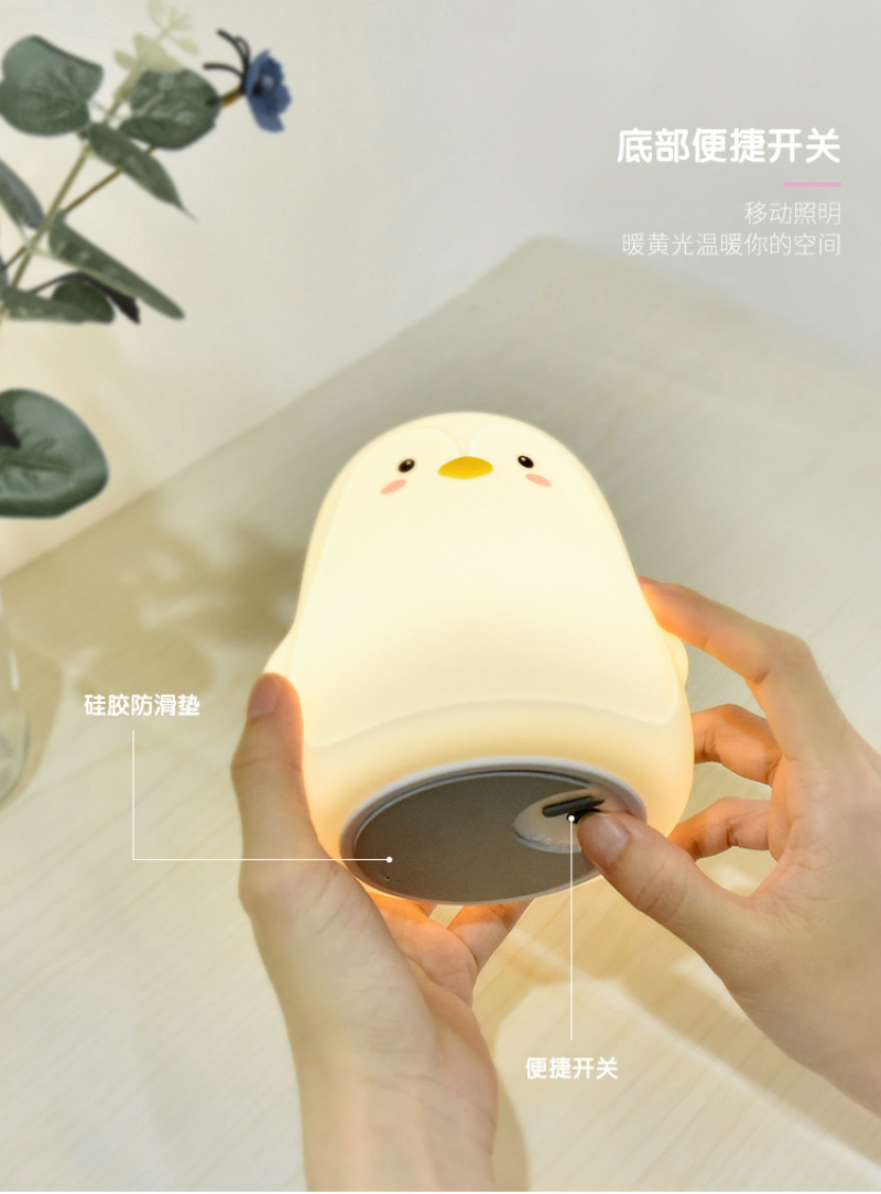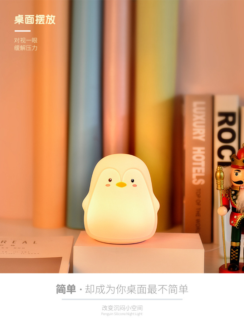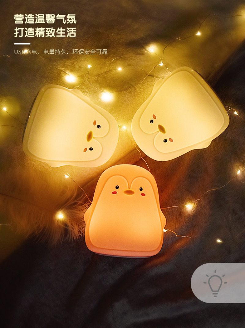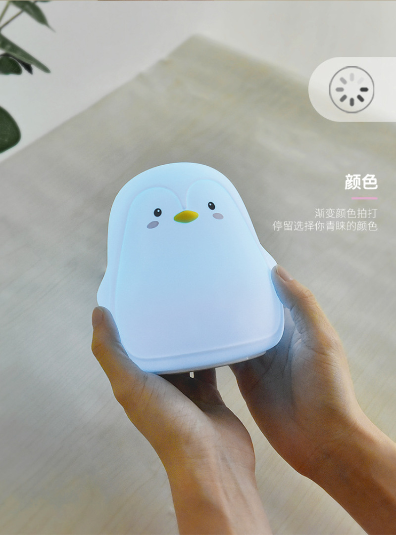 卡通企鹅硅胶灯 USB充电七彩变色拍拍灯 儿童卧室起夜伴睡小夜灯