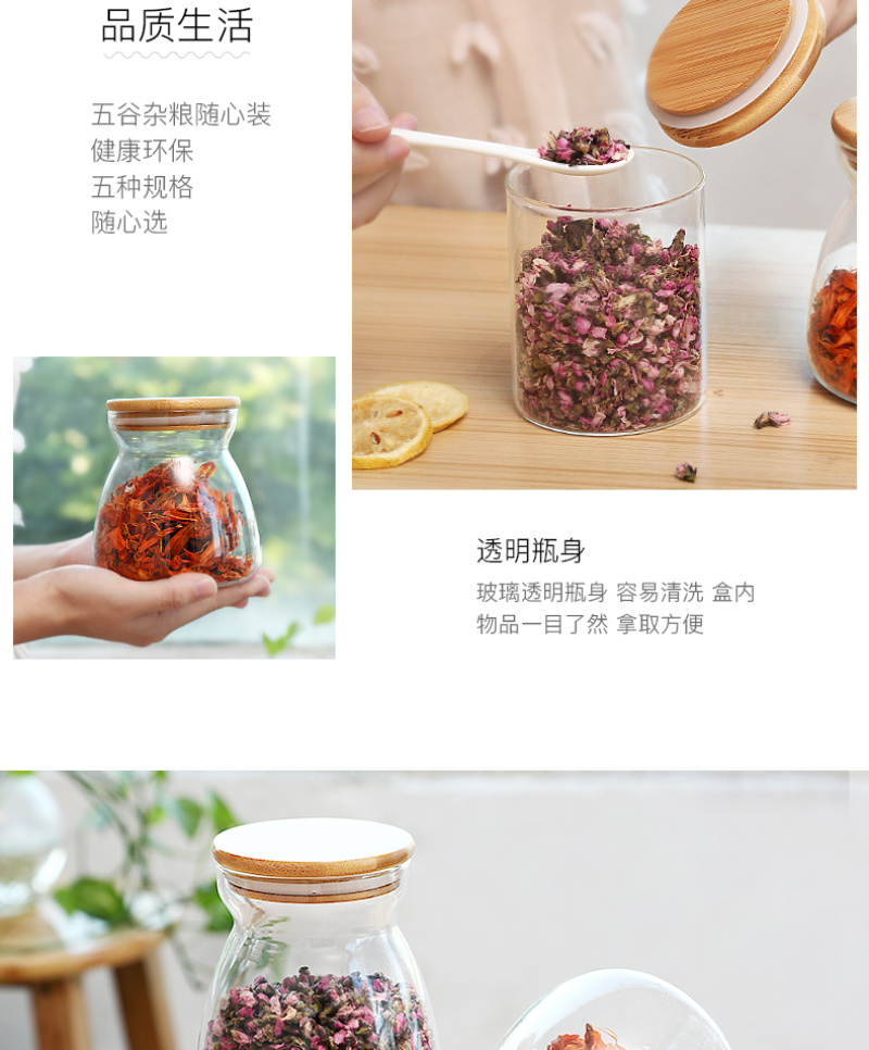 透明创意密封玻璃瓶子家用厨房装糖罐储物五谷杂粮食品收纳盒带盖