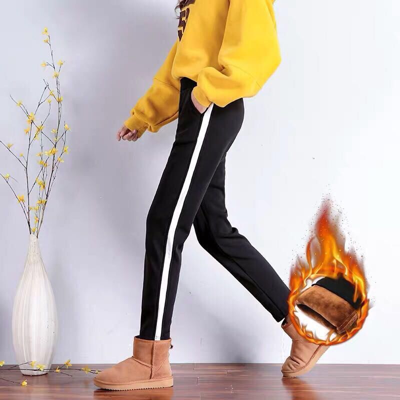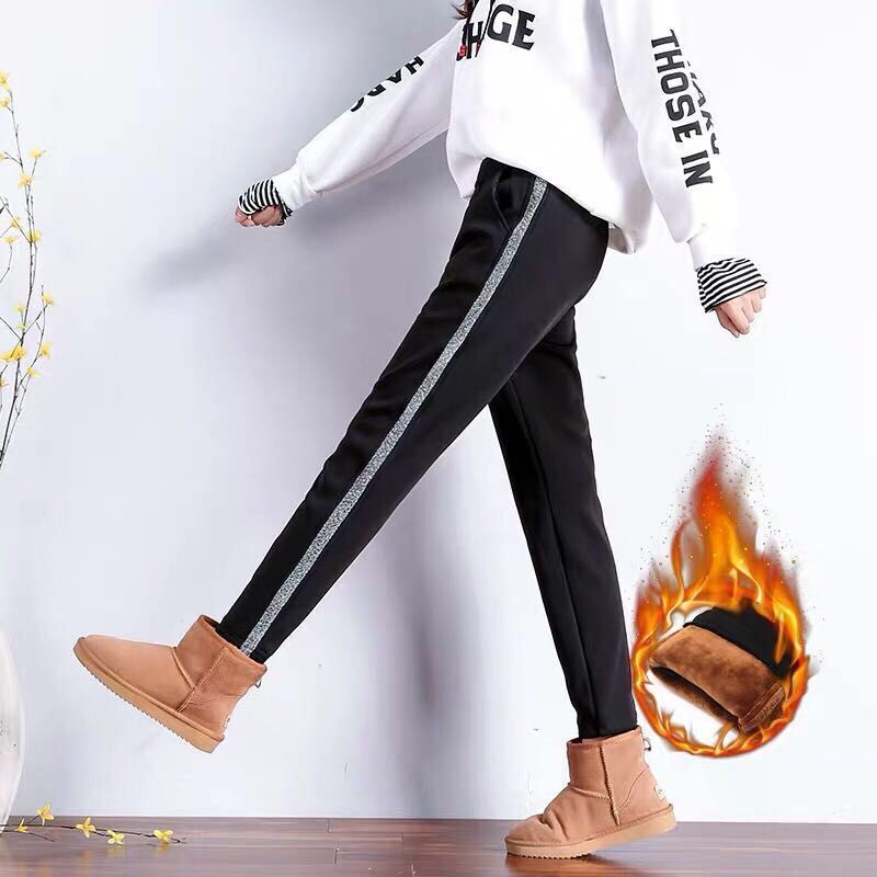 加绒加厚裤子女秋冬学生韩版宽松显瘦休闲哈伦运动卫裤冬