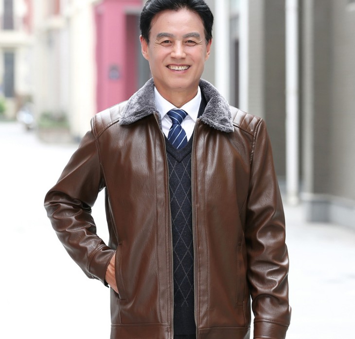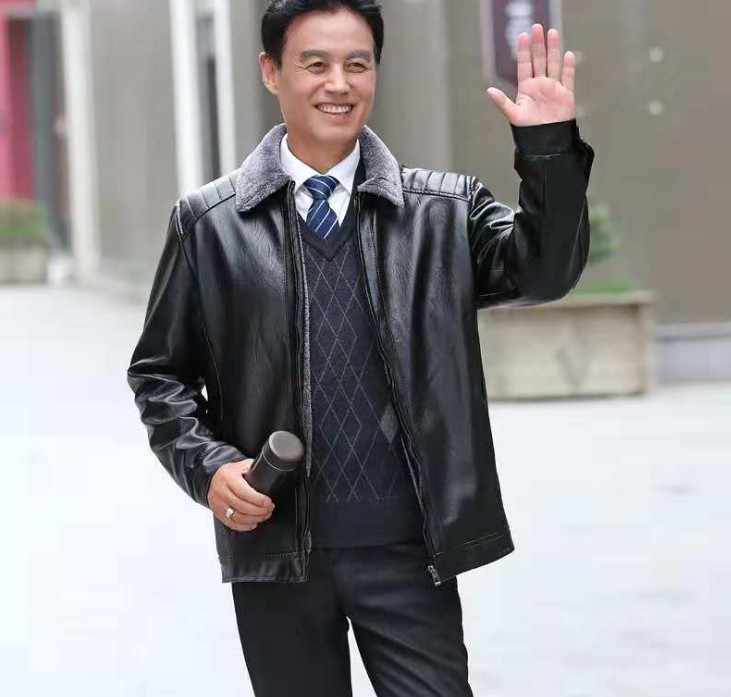 爸爸皮衣加绒加厚外套男秋冬装中年皮夹克休闲外套保暖皮衣男冬季