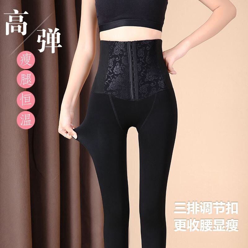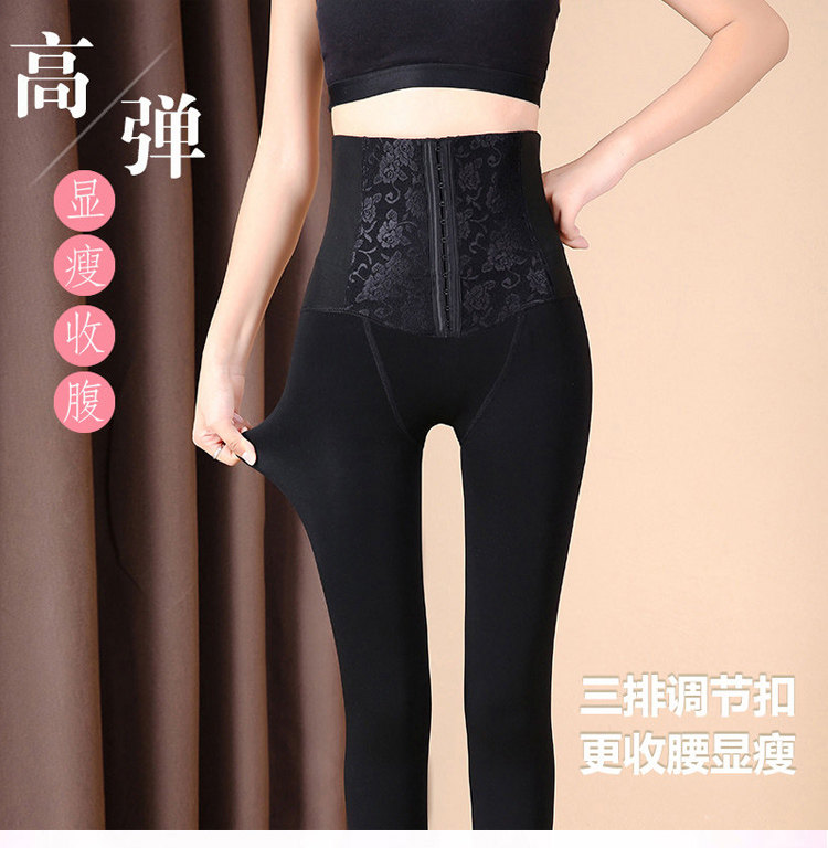 高腰裤三排扣加绒加厚提臀塑束身腰带打底裤女