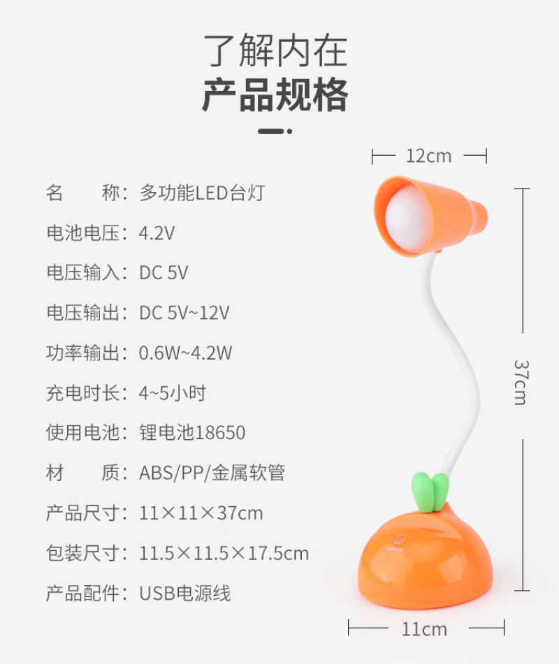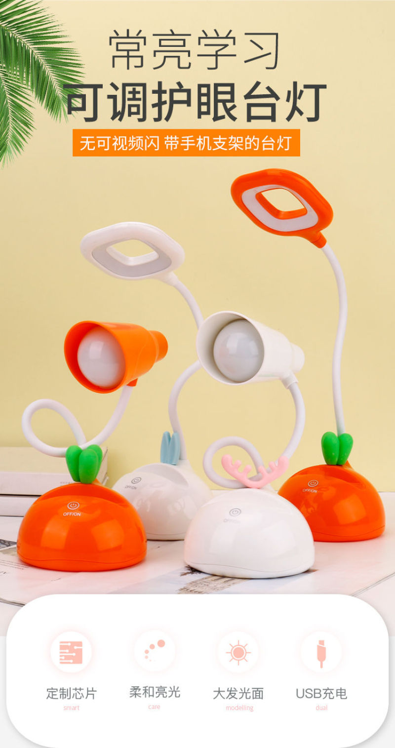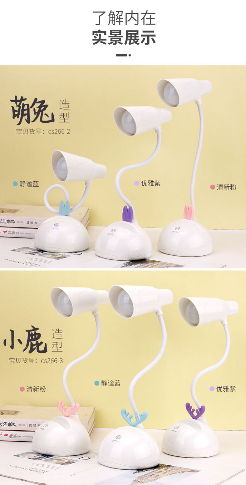 创意台灯可爱宿舍寝室女生护眼书桌可充电led儿童卡通 可当手机架