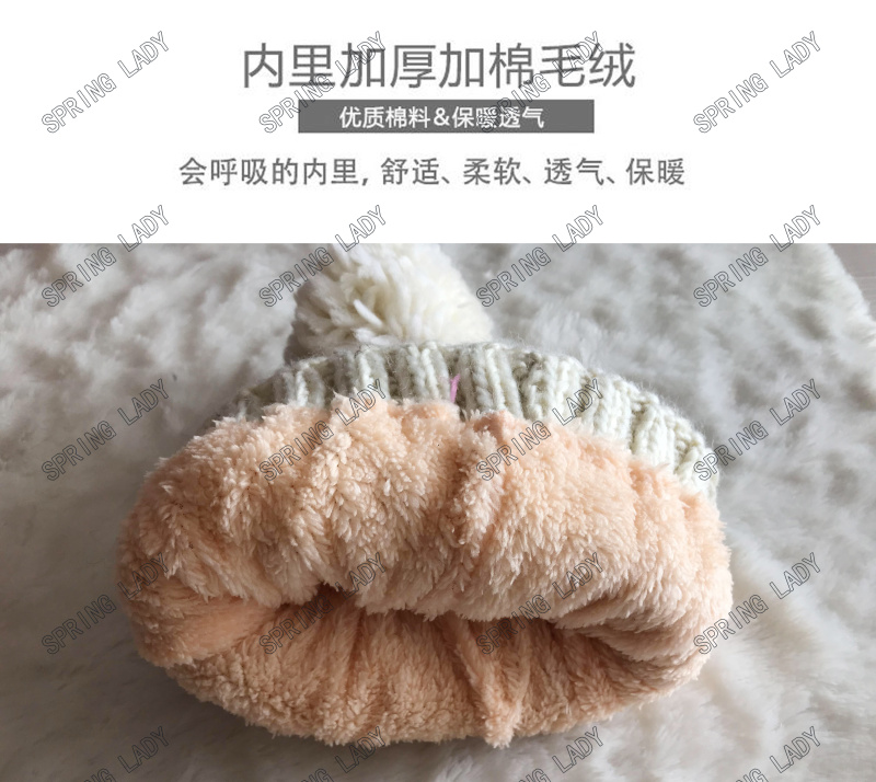 Spring Lady秋冬帽子韩版女士毛线帽日系加绒可爱针织帽儿童帽