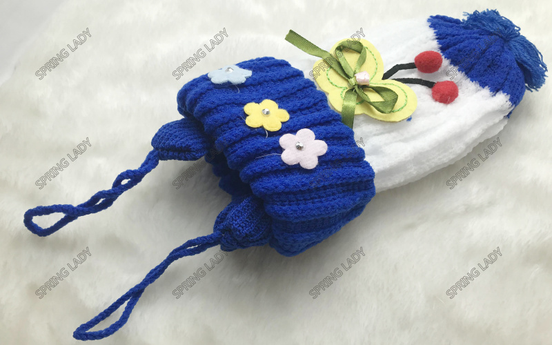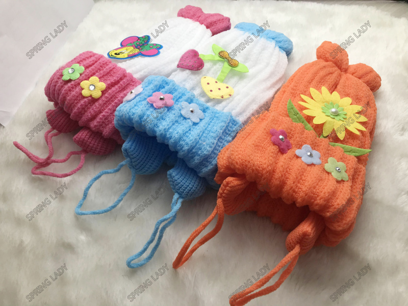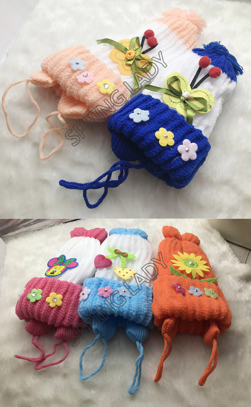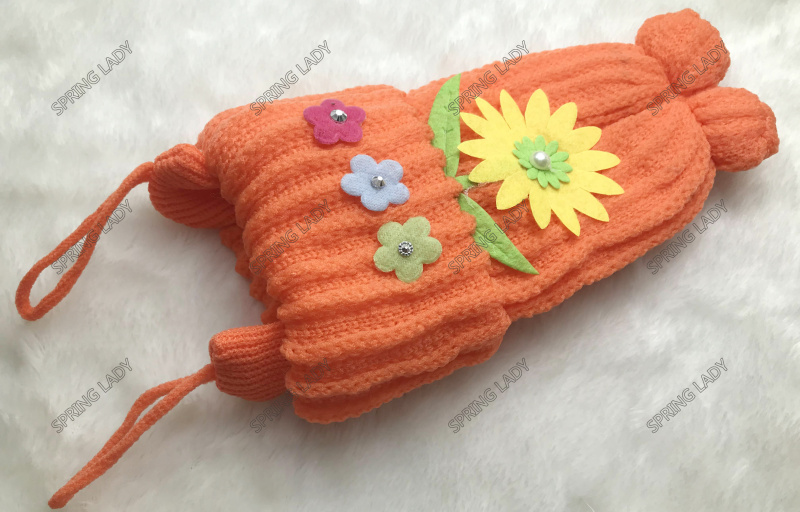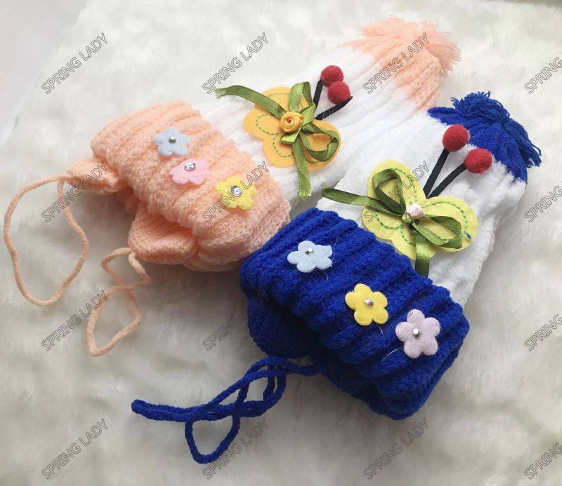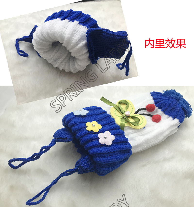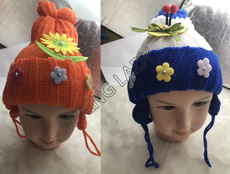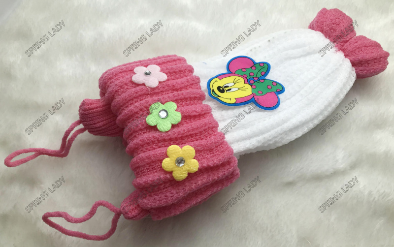 Spring Lady冬季加绒加厚三朵花儿童帽宝宝潮保暖护耳帽儿童帽