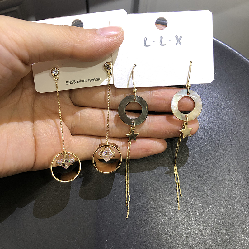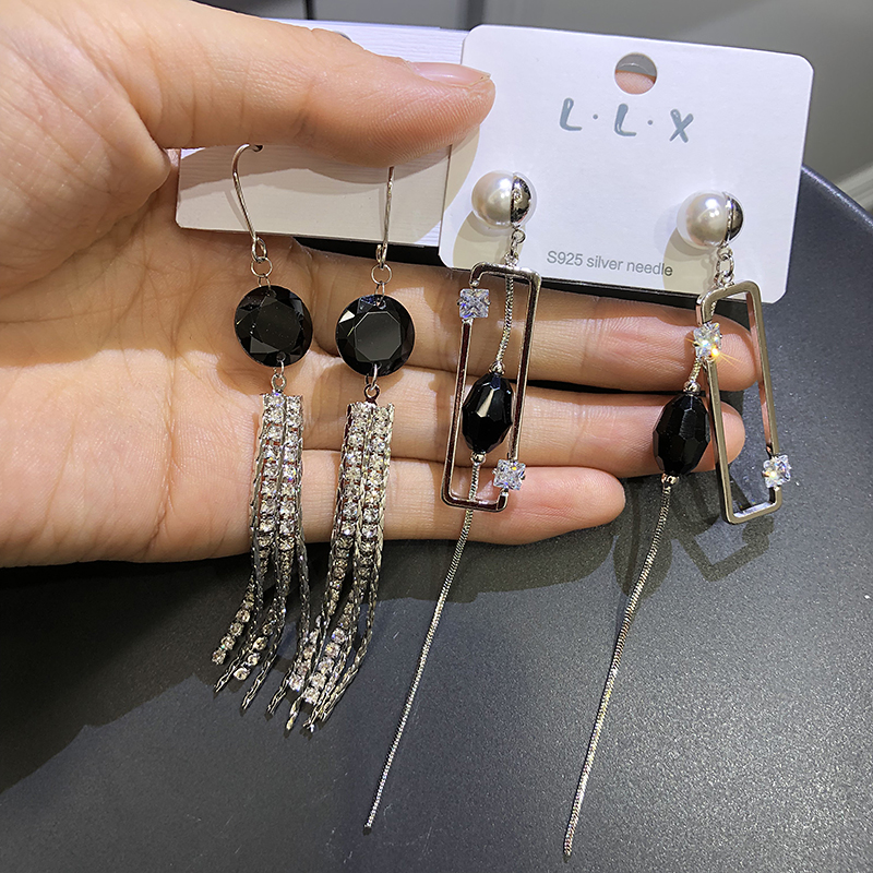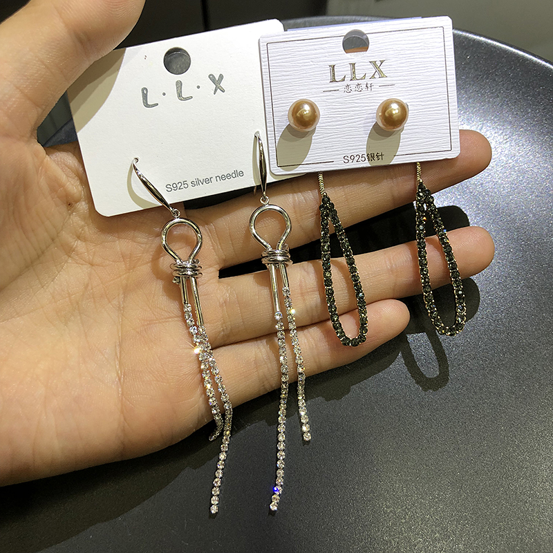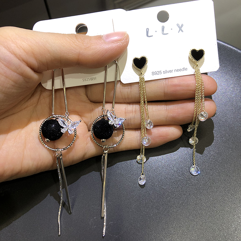 925银针长款锆石流苏潮耳环新款女修饰脸型摆摊耳坠批发019