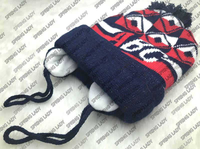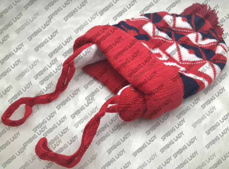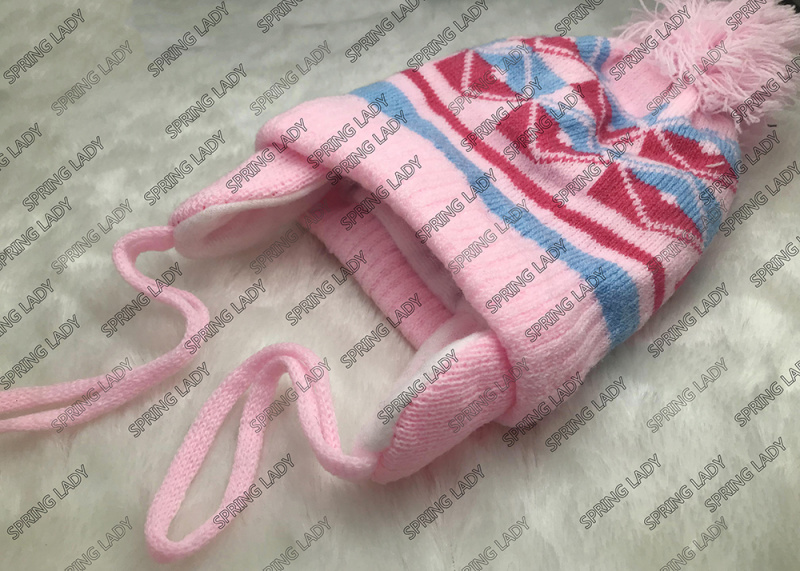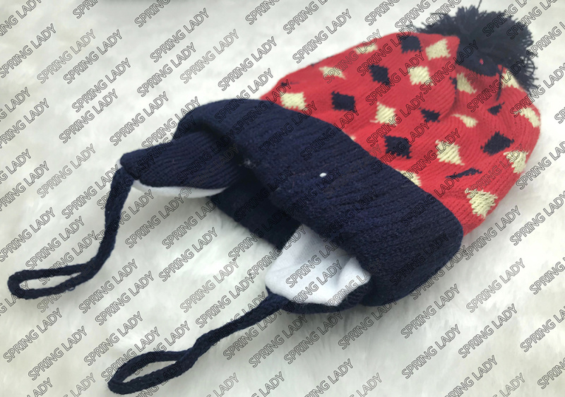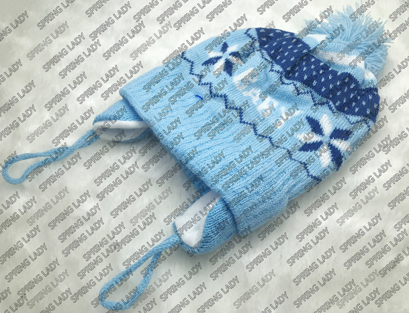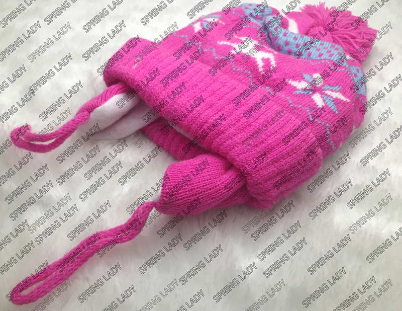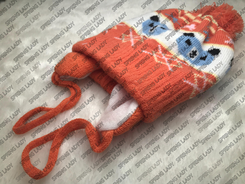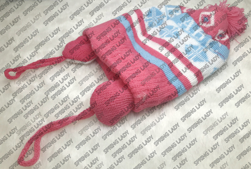 Spring Lady男女童加绒提花针织帽宝宝分体护耳帽毛线帽儿童帽