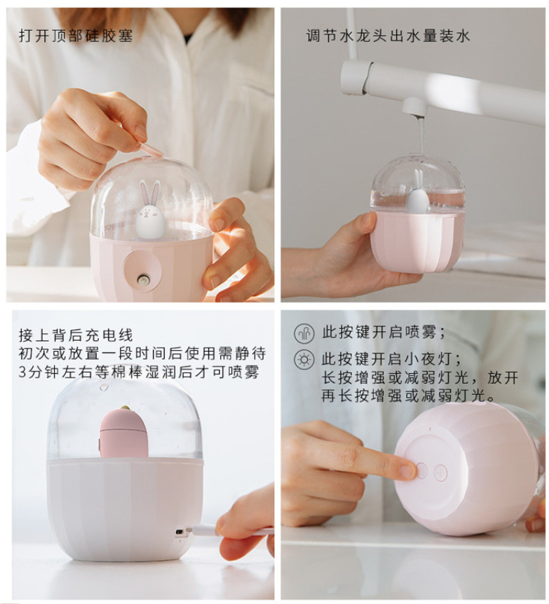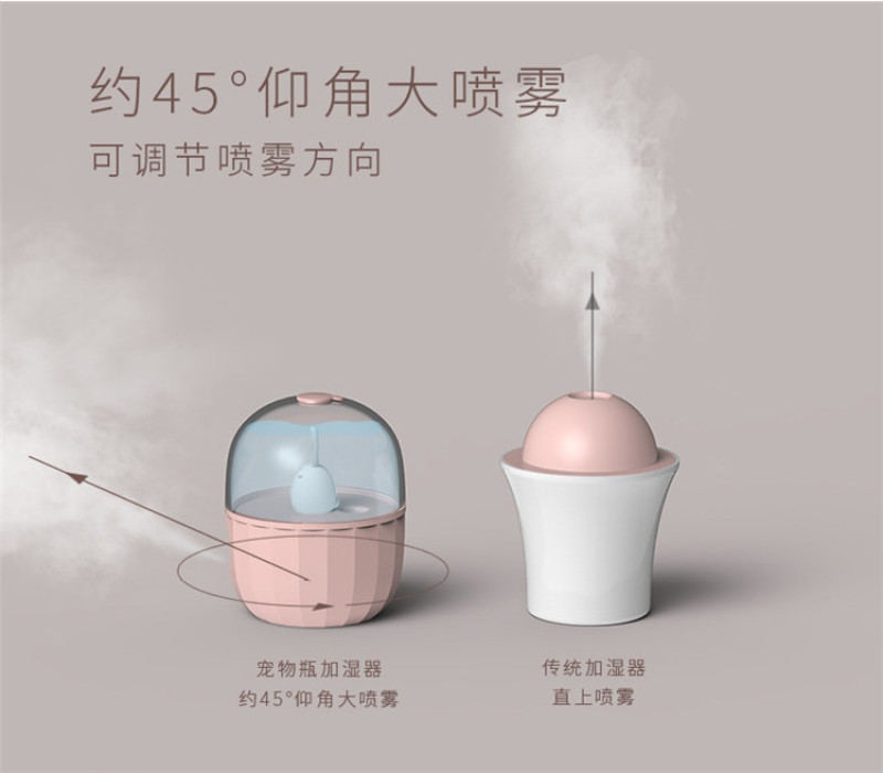 宠物瓶少女心USB加湿器大容量静音小夜灯桌面办公补水保湿送女生