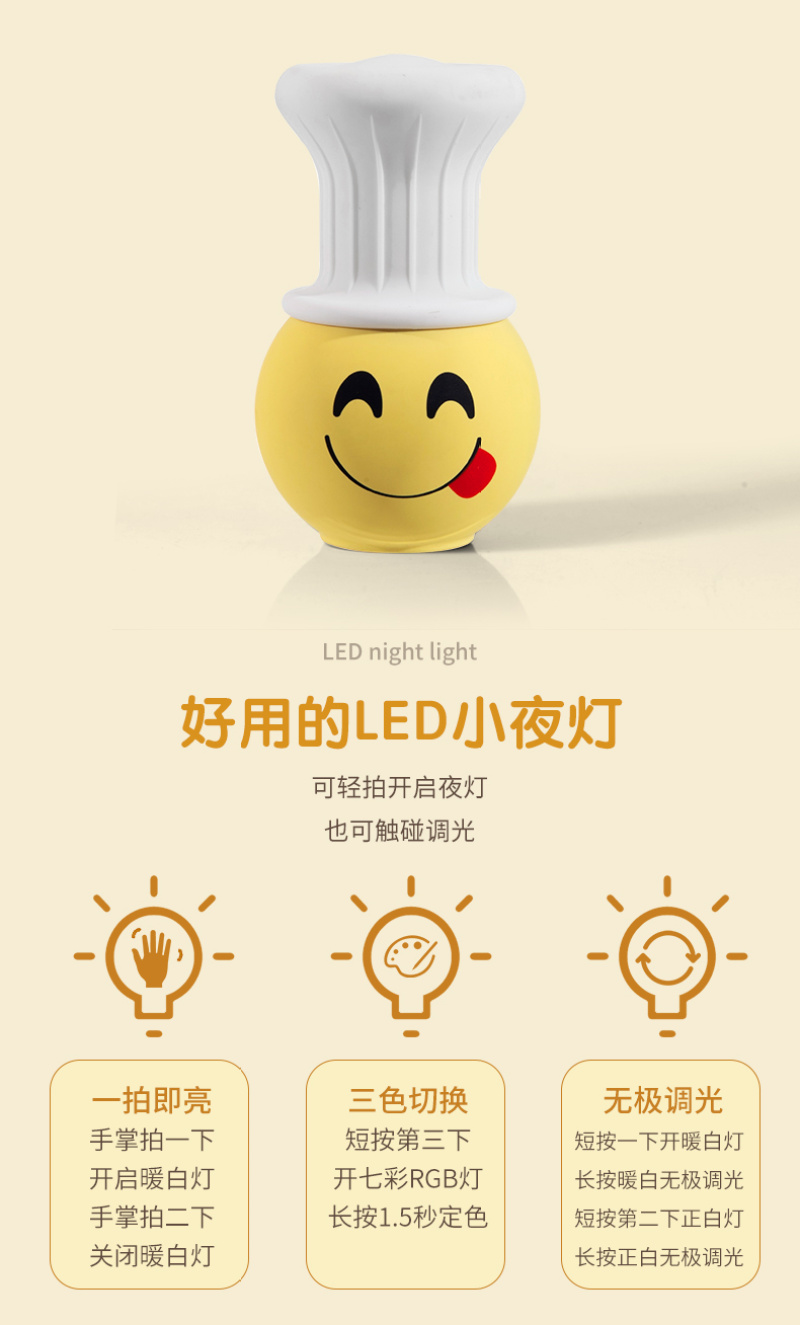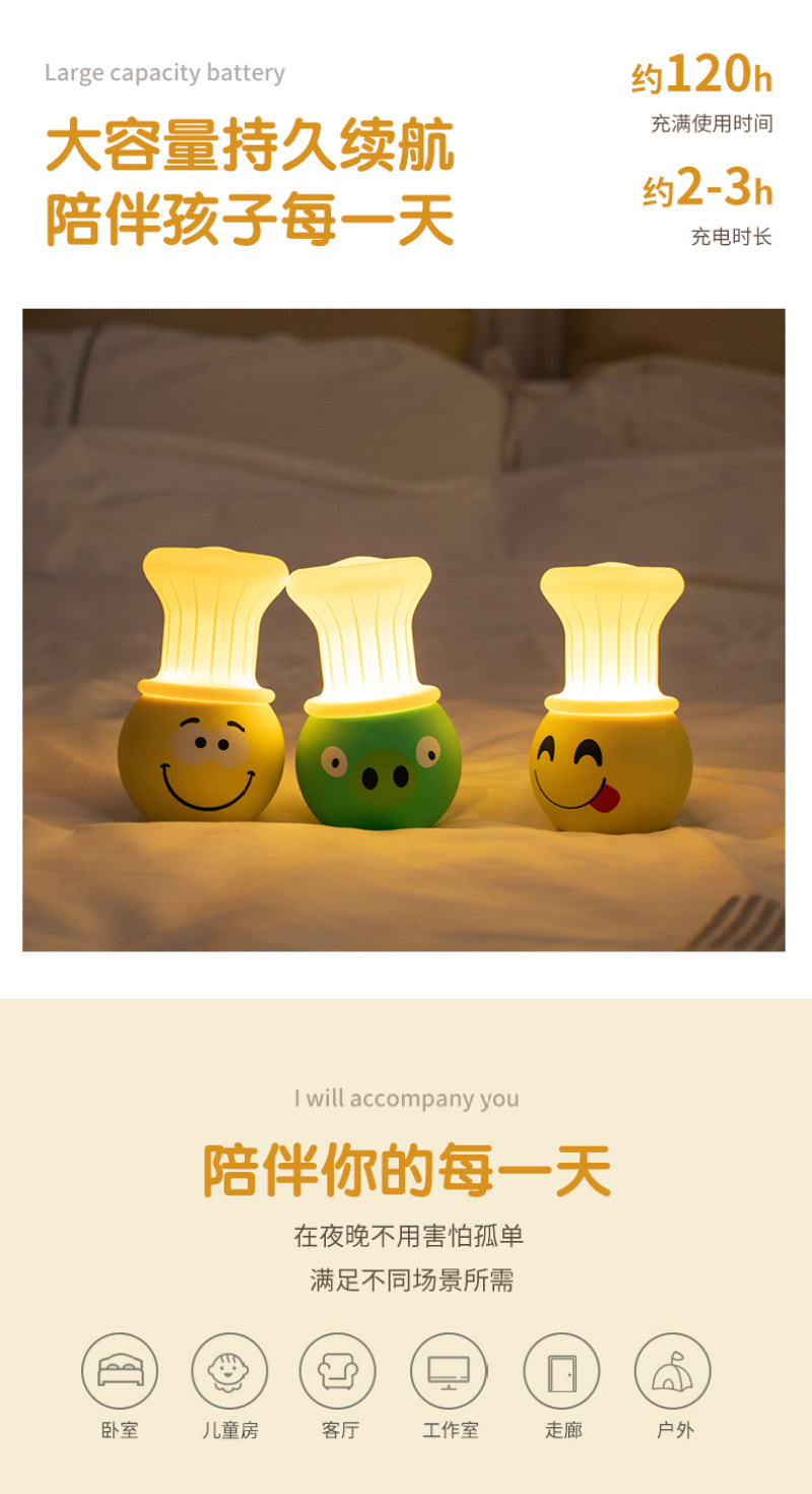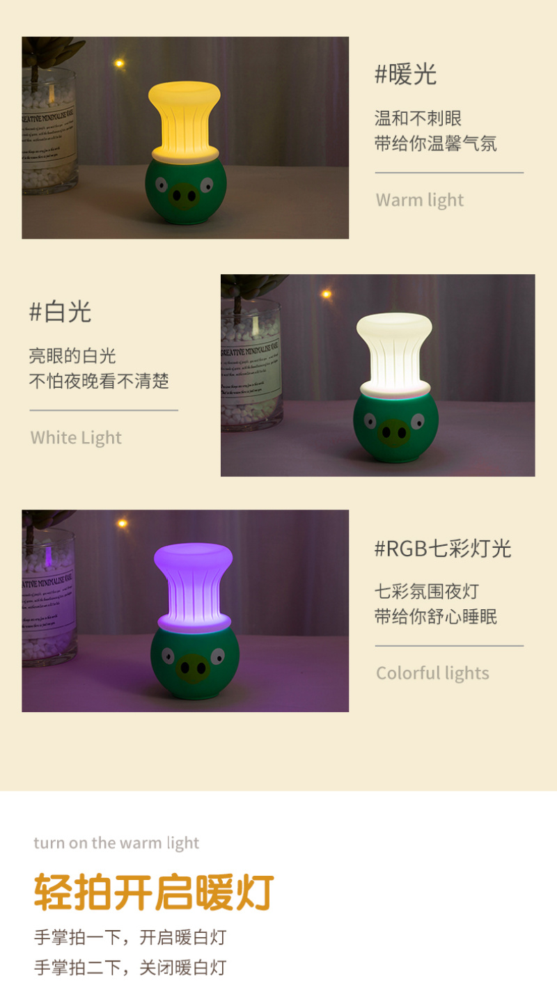 创意童趣硅胶小夜灯充电卧室床头婴儿喂奶护眼女拍拍睡眠伴睡台灯