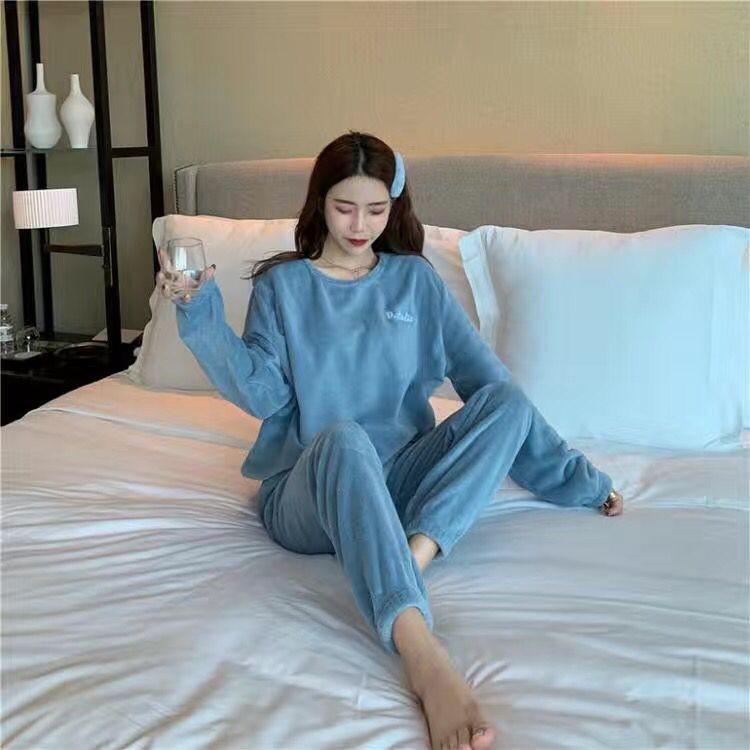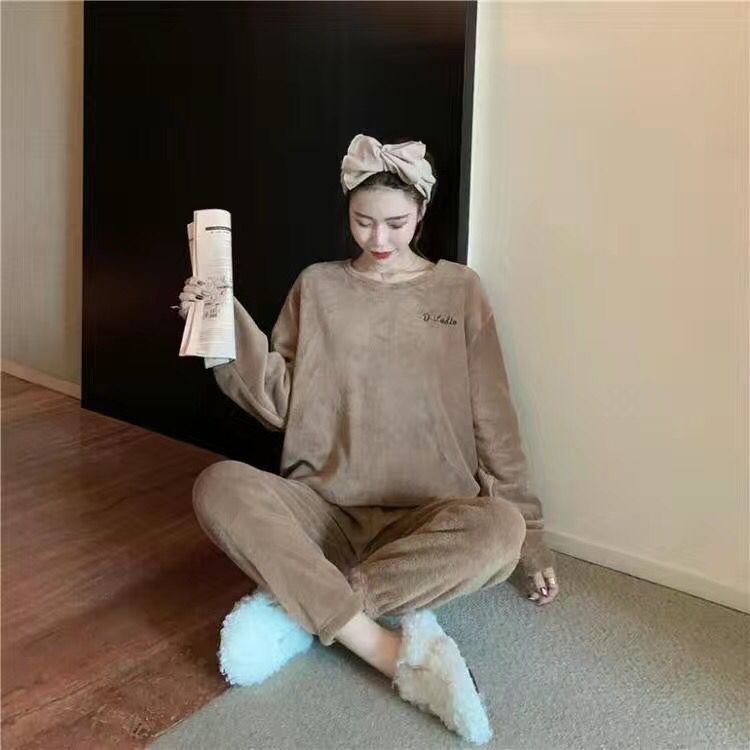 网红仙女暖暖裤套装珊瑚绒外穿懒人睡裤宽松秋冬季保暖休闲两件套
