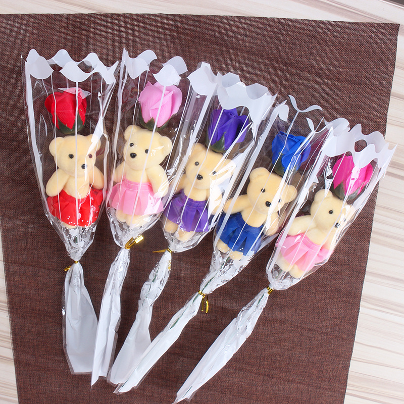厂家直销单支小熊香皂玫瑰花扫街礼品公司活动送礼商场促销教师节