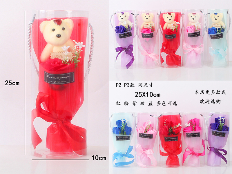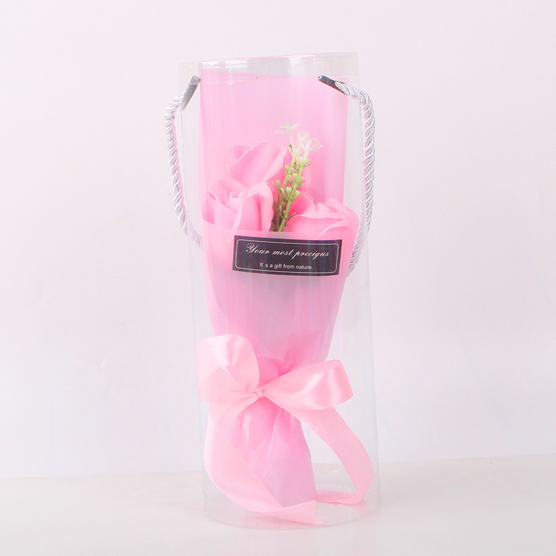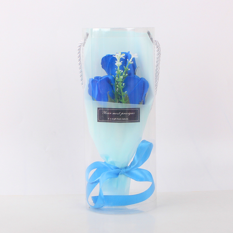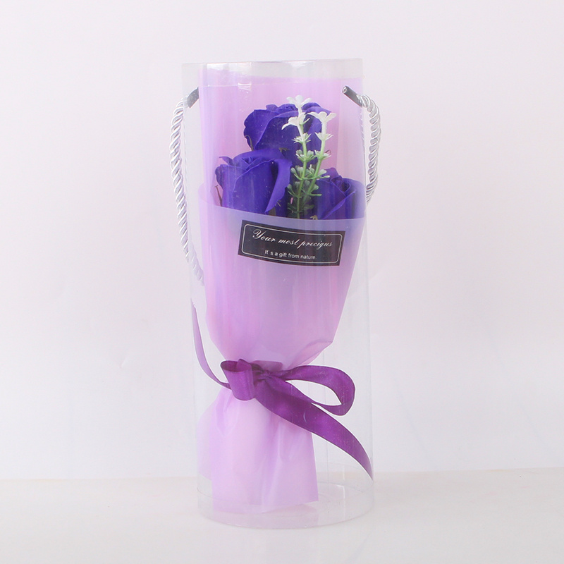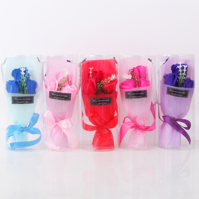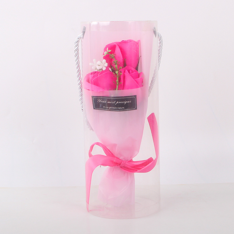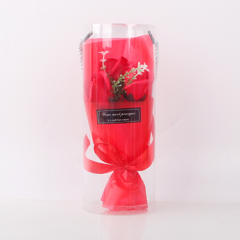 厂家直销批发圆筒PVC盒3朵仿真香皂玫瑰花情人节圣诞节外贸爆款