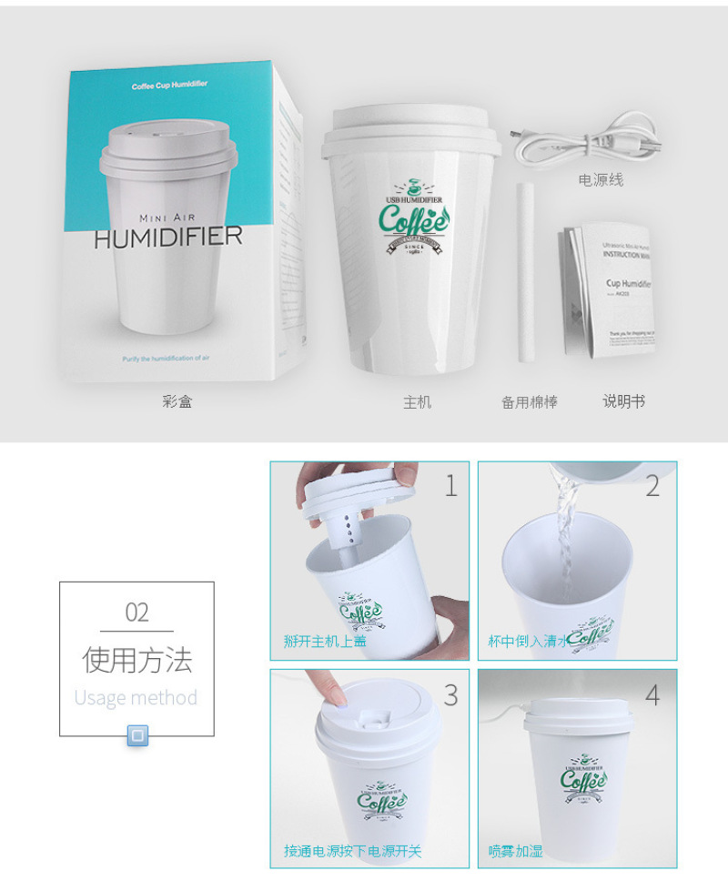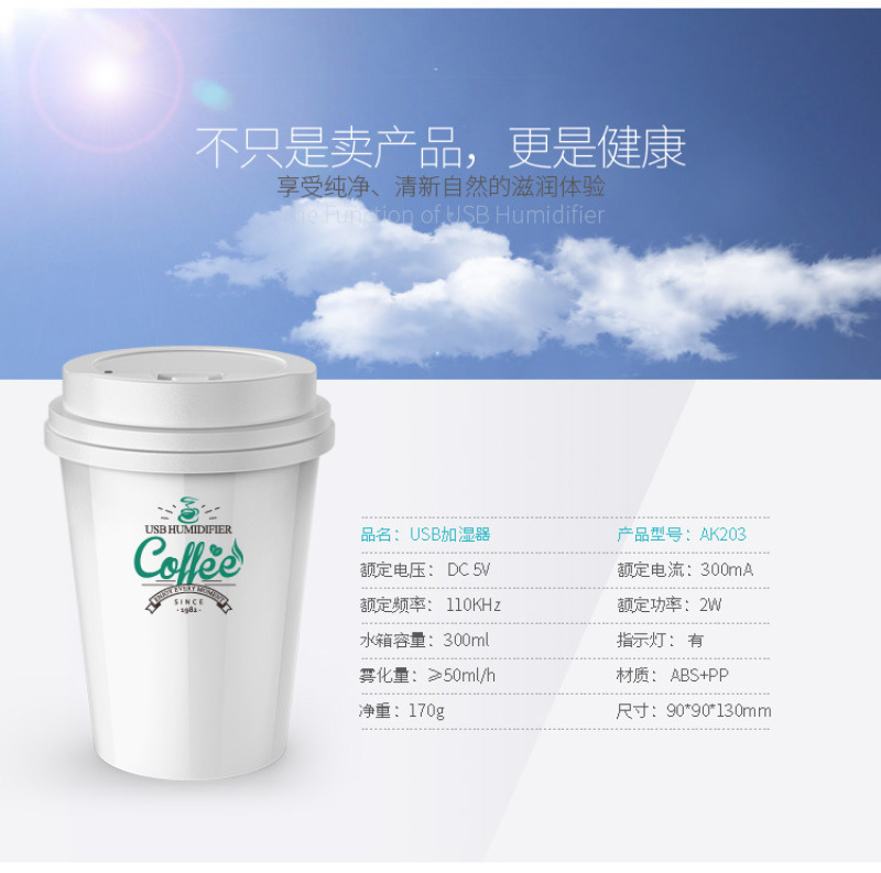 迷你USB 大雾化量办公桌面静音 咖啡杯加湿器