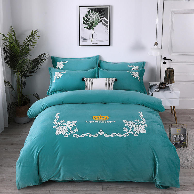 ywxuege水晶绒精美毛巾绣四件套 冬日保暖床上用品发财树烟灰
