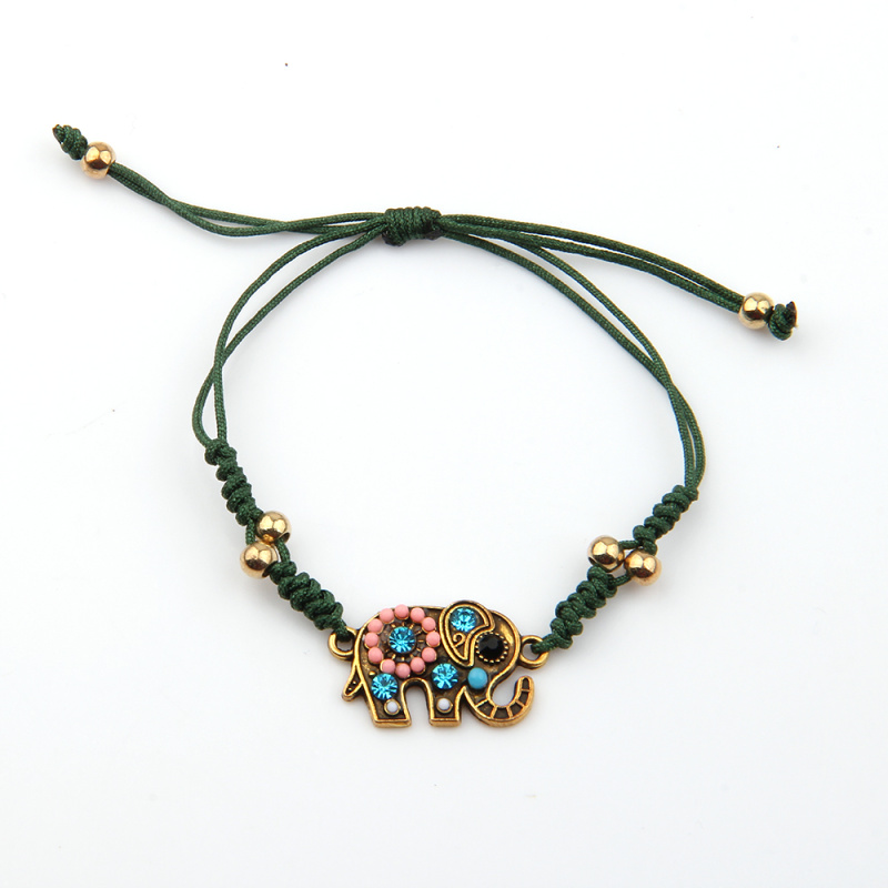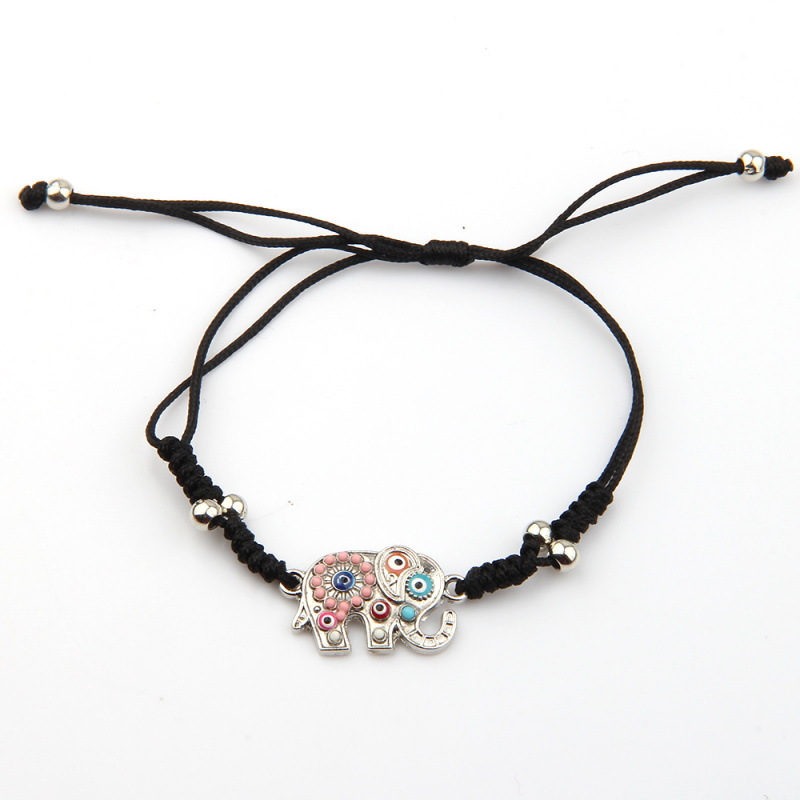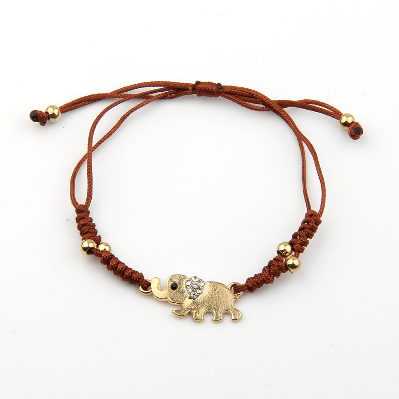 韩版简约合金镶钻小象 蜡线串珠纯手工编织蛇结手链 厂家批发