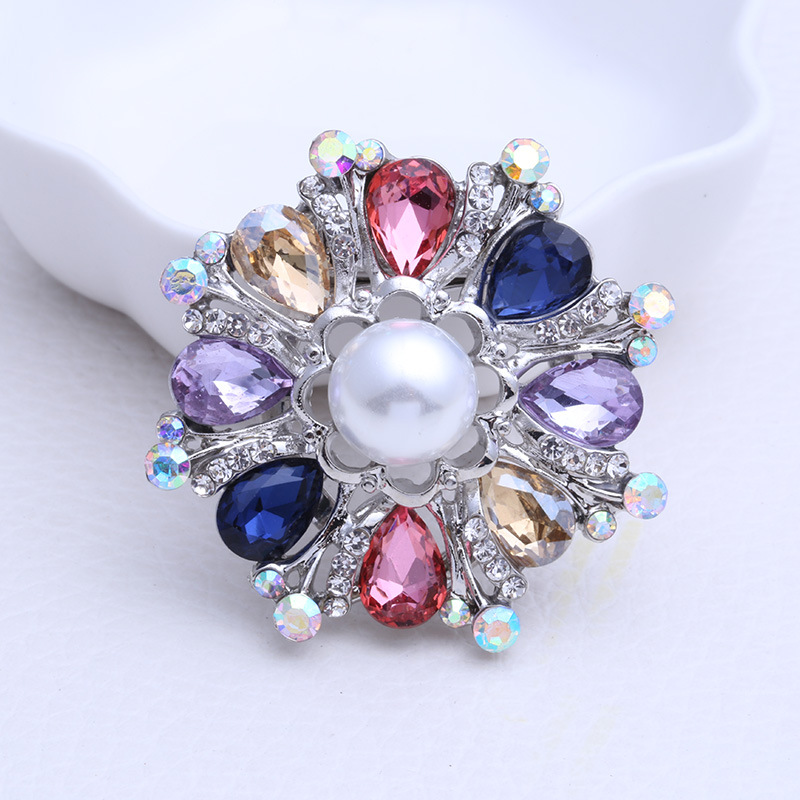 两用丝巾扣七彩玻璃丝巾扣水钻胸针胸针多用途四色可选花卉造型