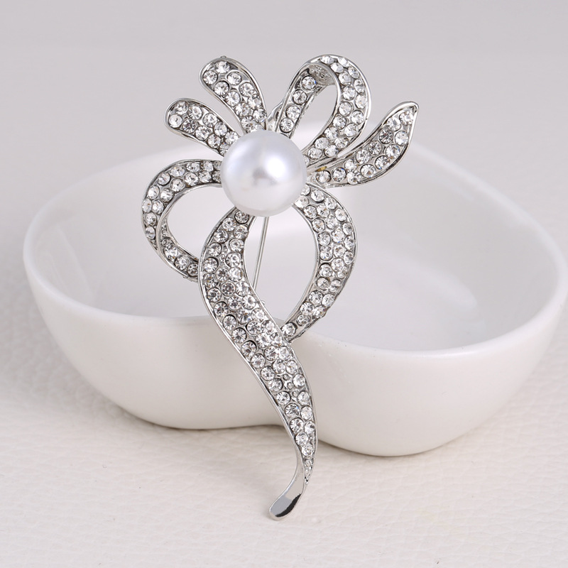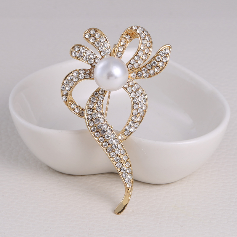 新款韩版珍珠胸针水钻合金胸花女 别针衣饰花卉造型配饰