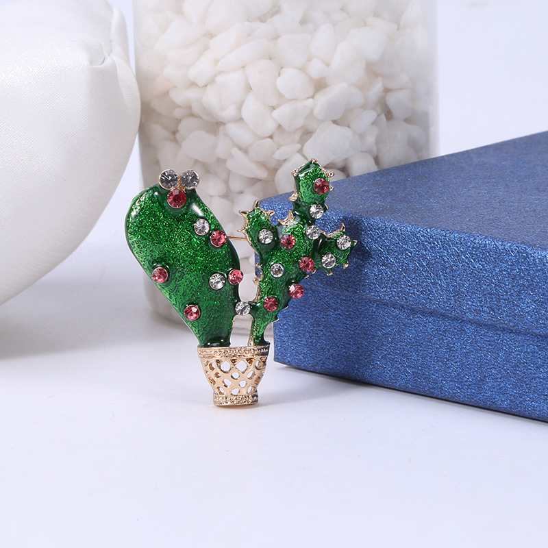 新款热销植物胸花 仙人掌合金镶钻流行简约气质百搭毛衣服饰胸针