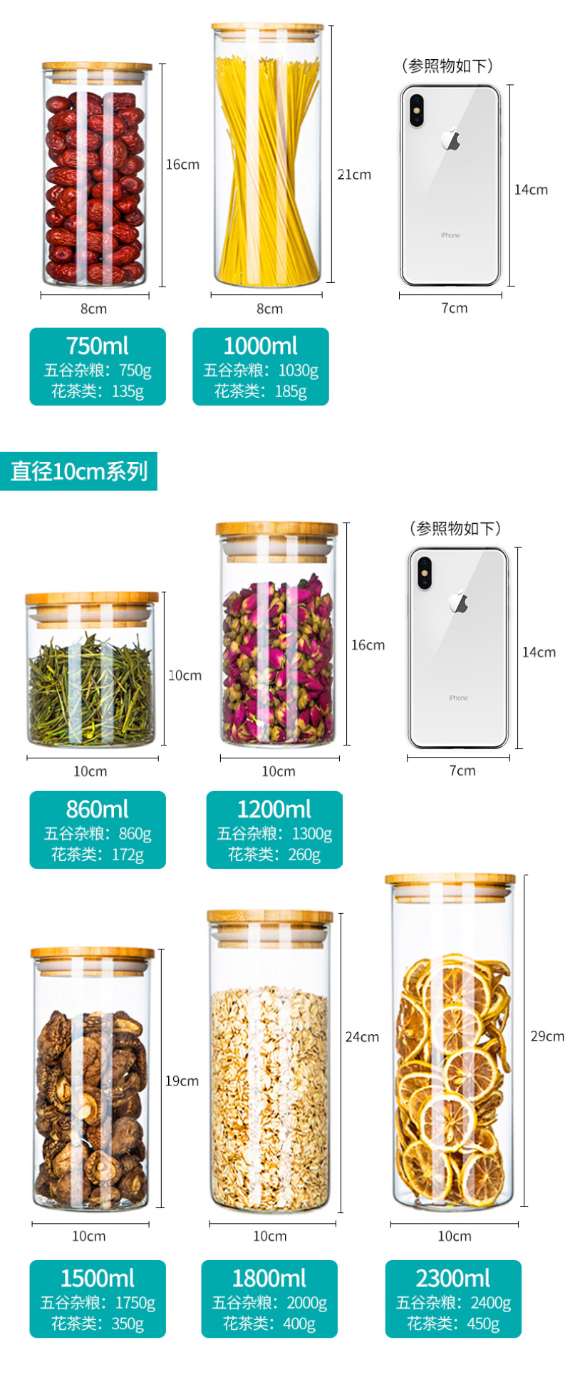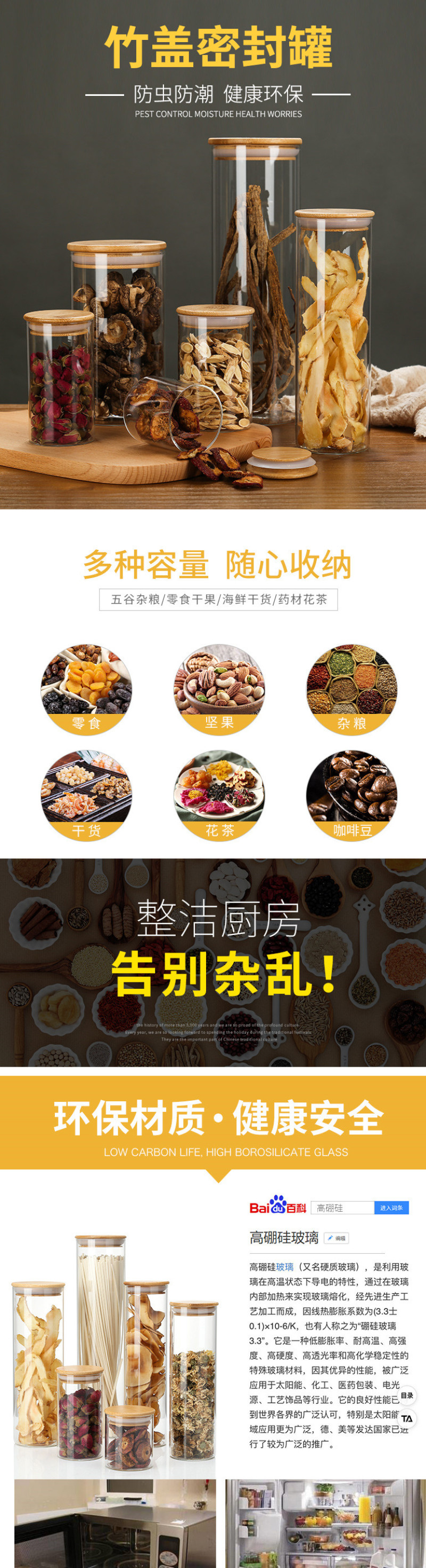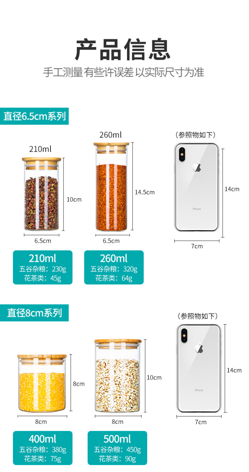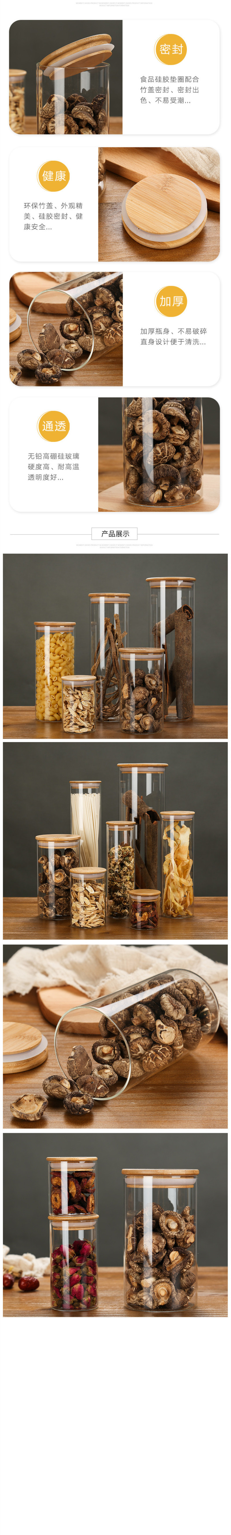 竹密封罐茶叶罐玻璃罐厨房透明玻璃瓶子带盖杂粮小储物罐食物罐