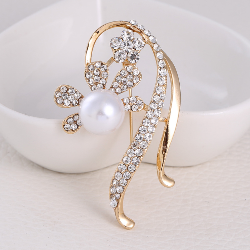 新款韩版珍珠胸针水钻合金胸花女 别针衣饰花卉造型配饰