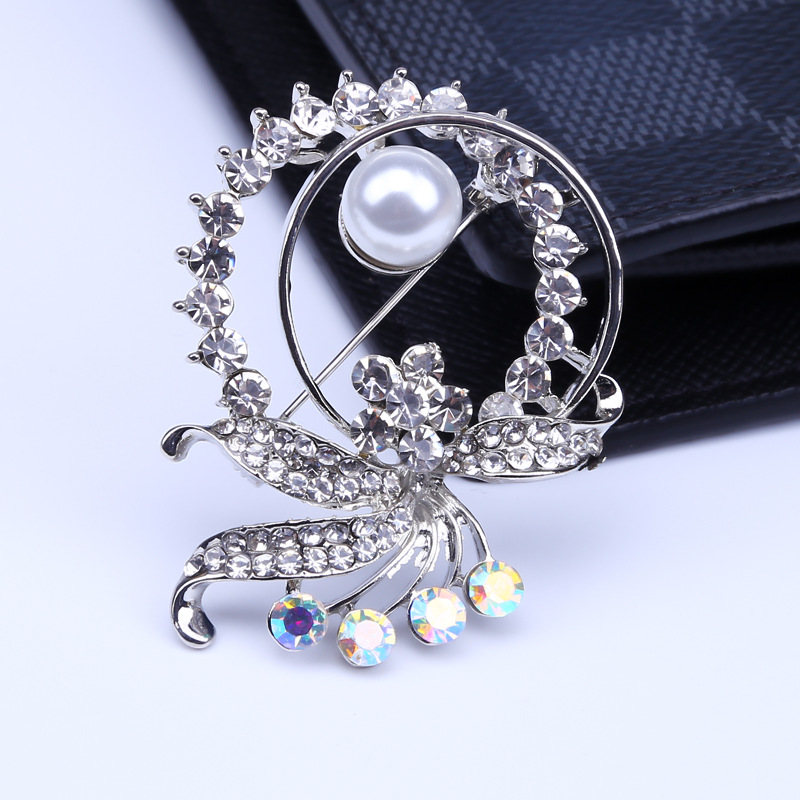 新款韩版珍珠胸针水钻合金胸花女 别针衣饰花卉造型配饰