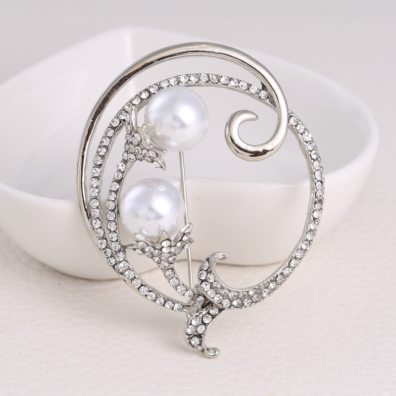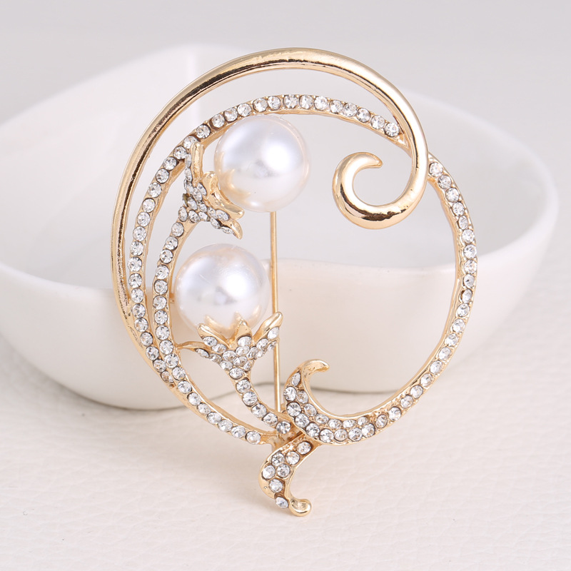 新款韩版珍珠胸针水钻合金胸花女 别针衣饰花卉造型配饰