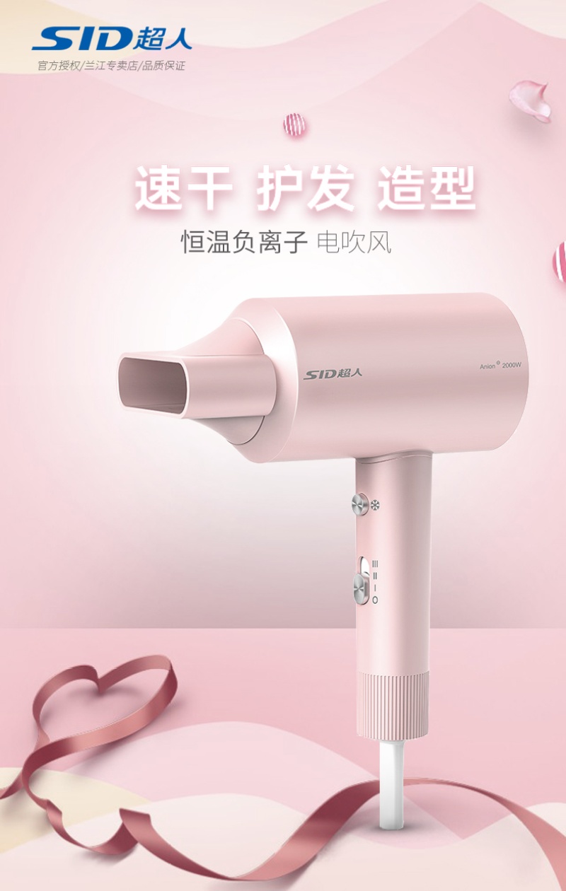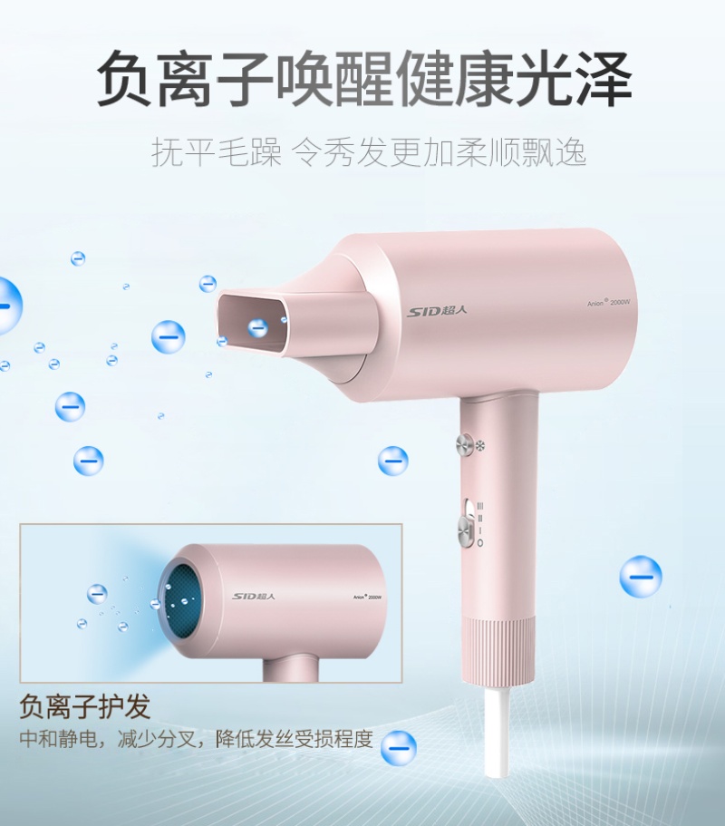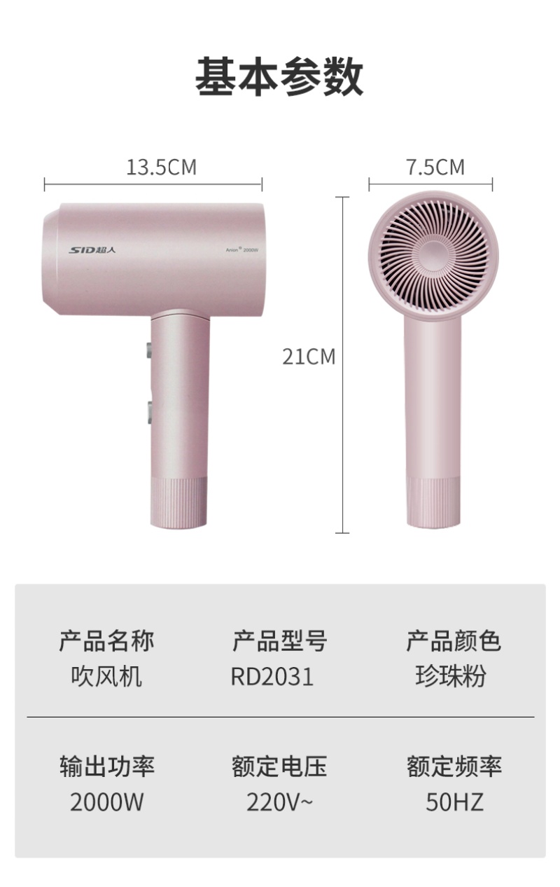SID/超人RD2031负离子吹风机2000W大功率多档调节