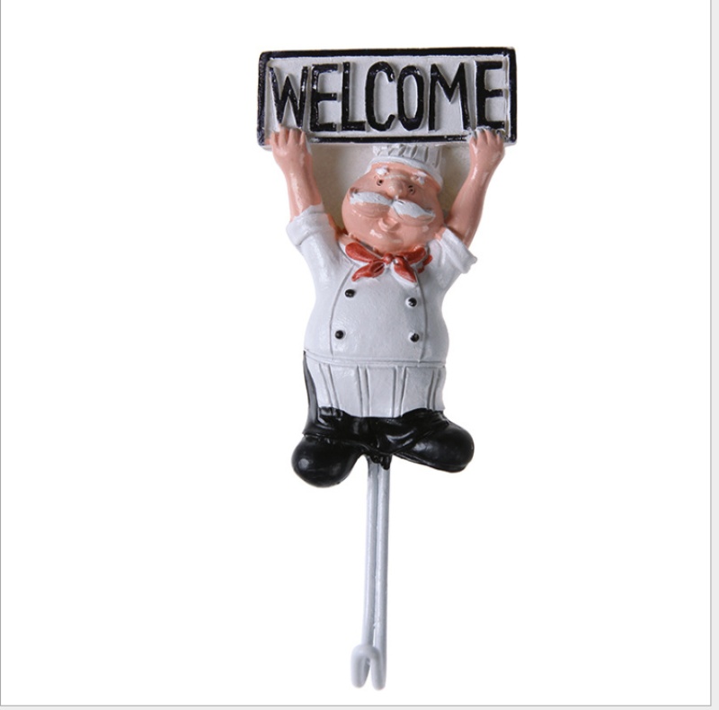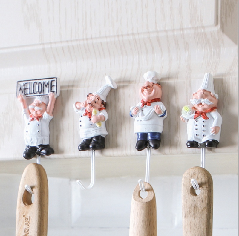厨房门后墙壁挂无痕卡通厨师树脂不锈钢强力免钉挂钩粘钩