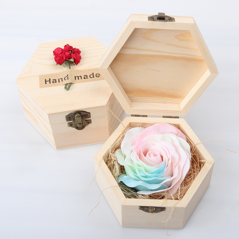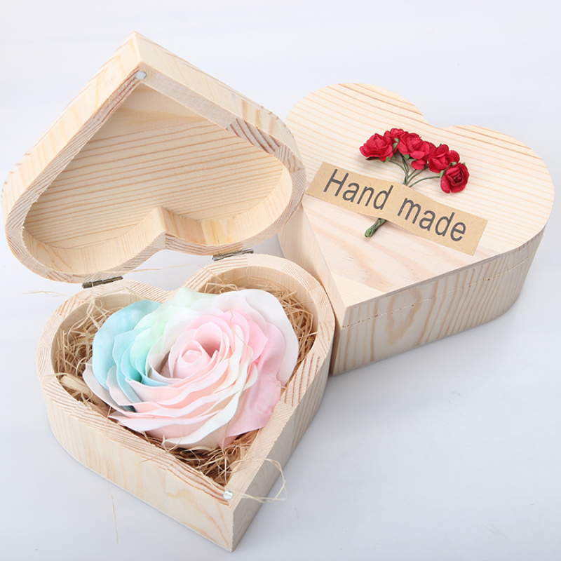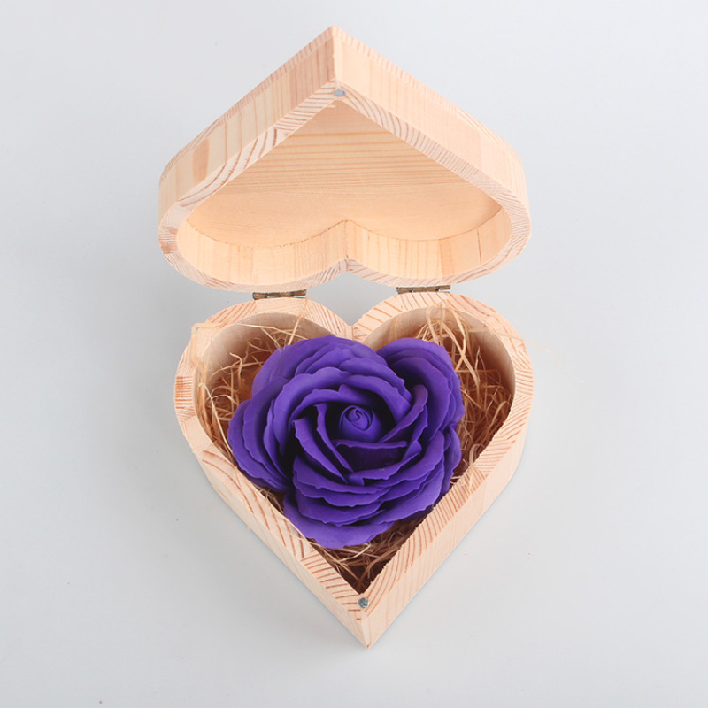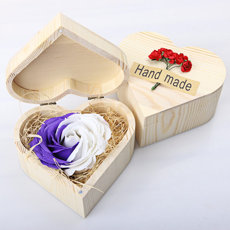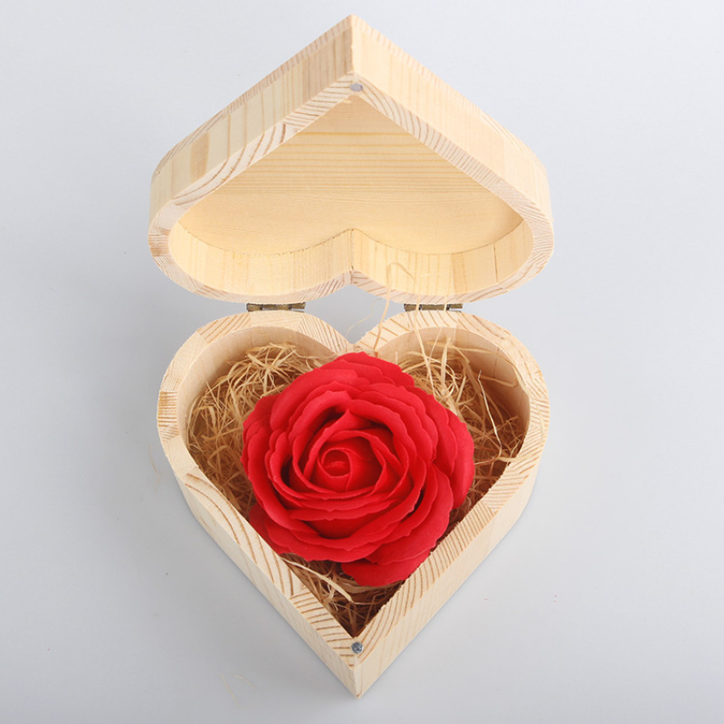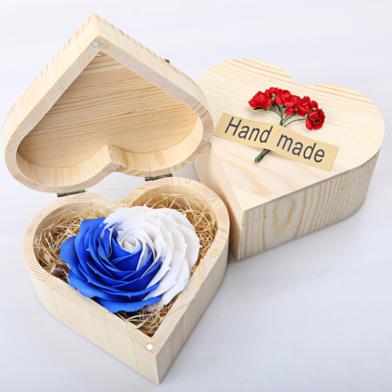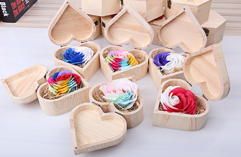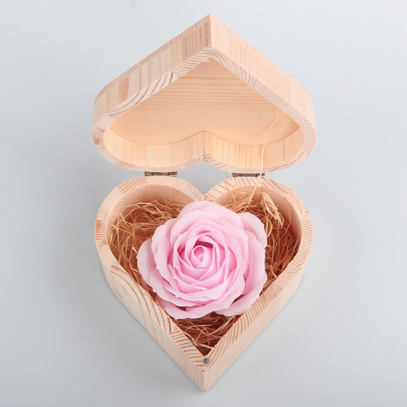 仿真香皂大朵玫瑰花母亲情人节送男女友惊喜浪漫礼物心形木质礼盒