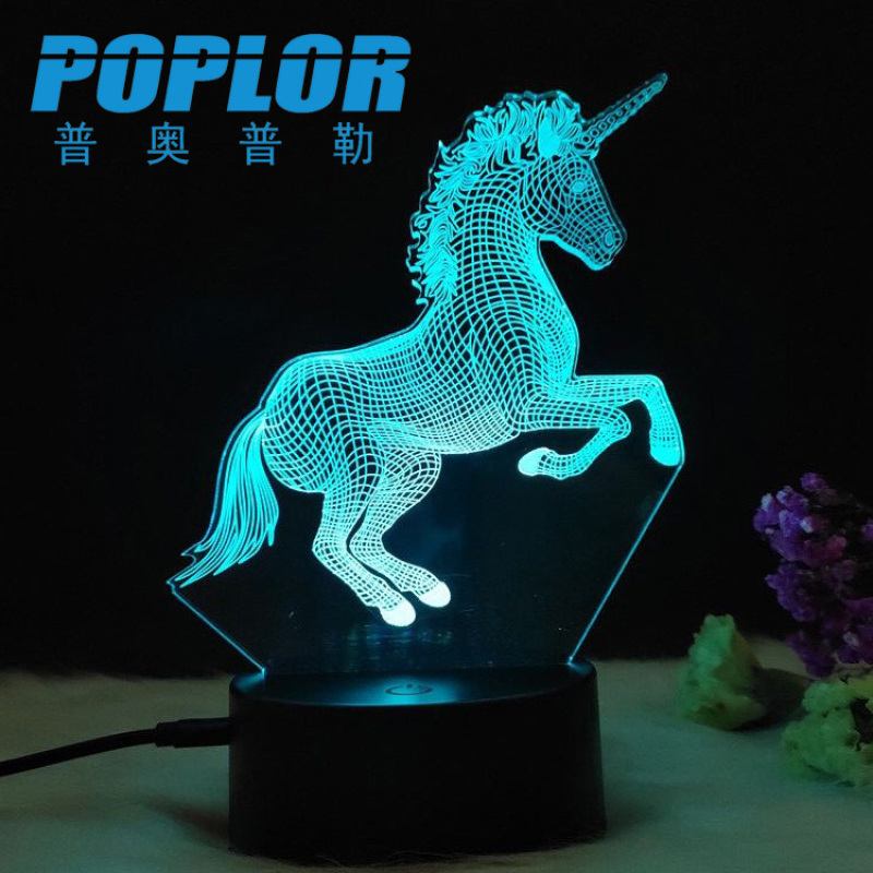 LED七彩3D小夜灯 亚克力底座新奇特LED灯 创意礼品装饰摆件触摸款