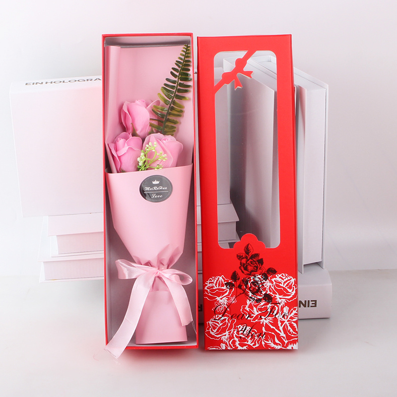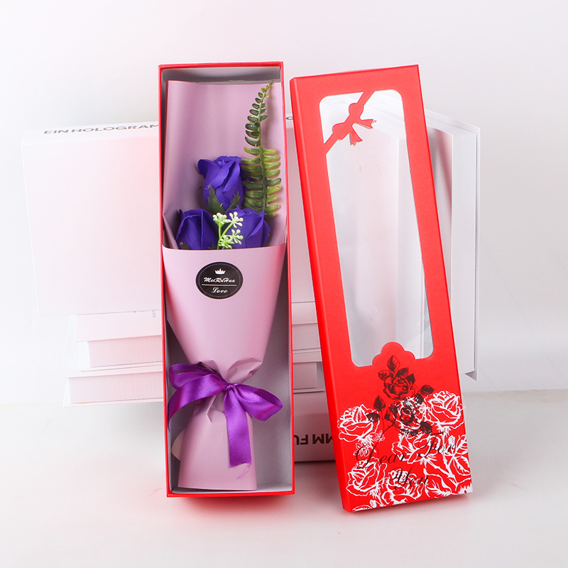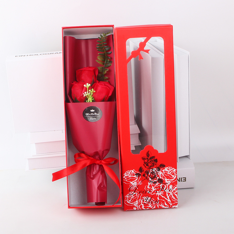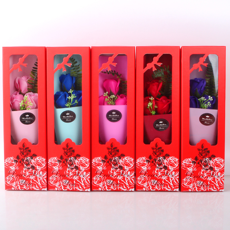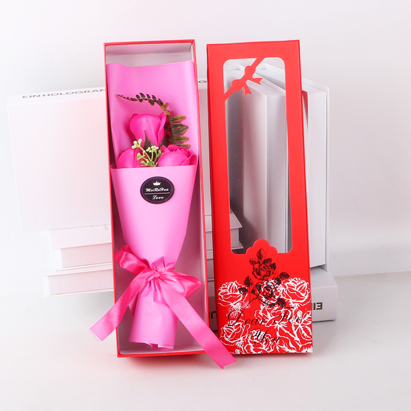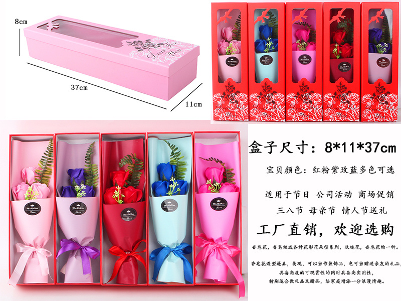 3朵香皂花礼盒仿真玫瑰花束教师节情人节礼物圣诞节节日活动礼品