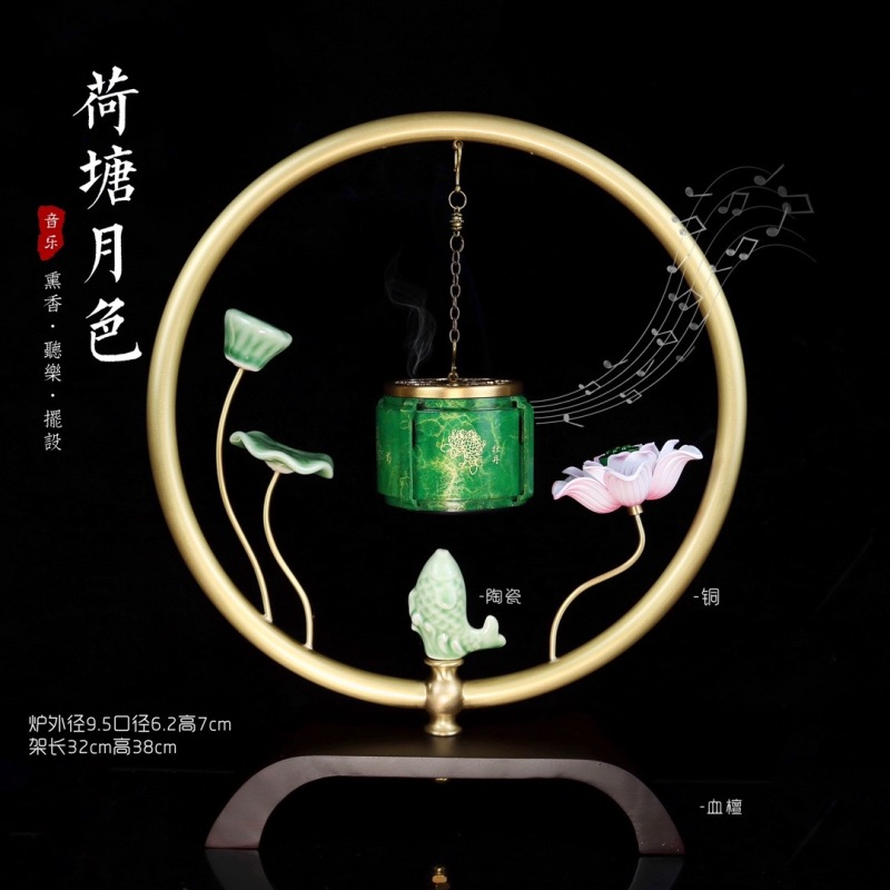 芸亭工艺荷塘月色蓝牙古典音乐机香炉吊炉禅意摆件家用室内沉檀香