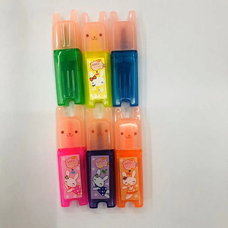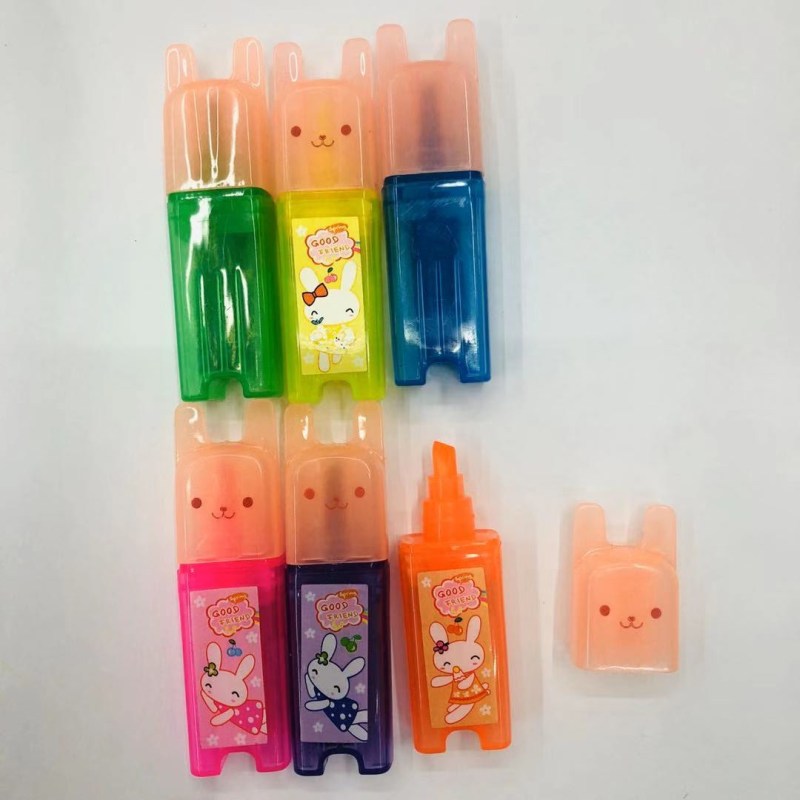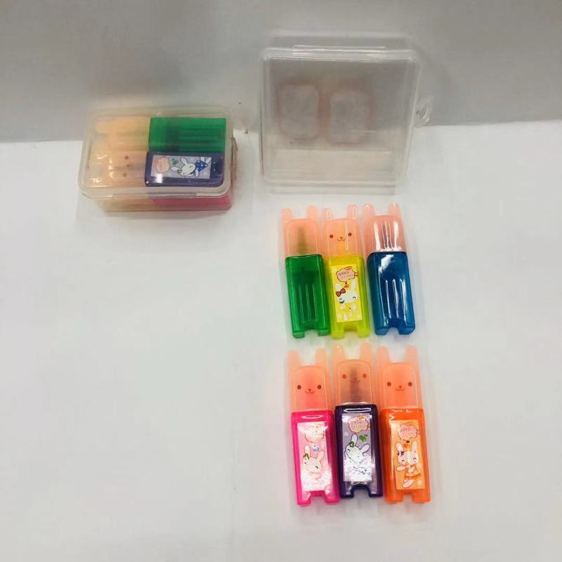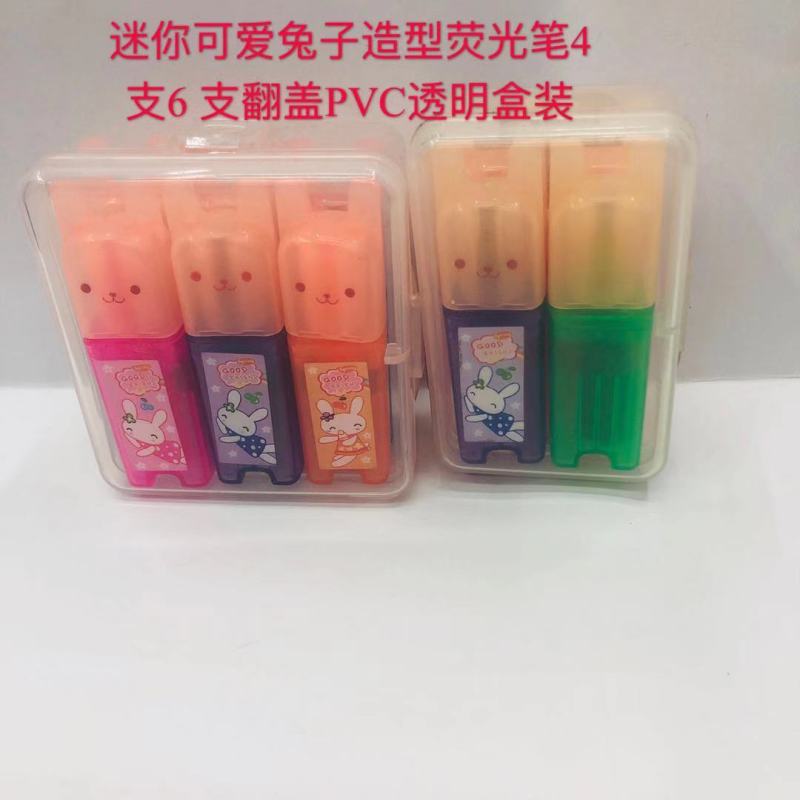 迷你可爱小兔子造型荧光笔 随身携带 塑料盒 礼品笔4支6支