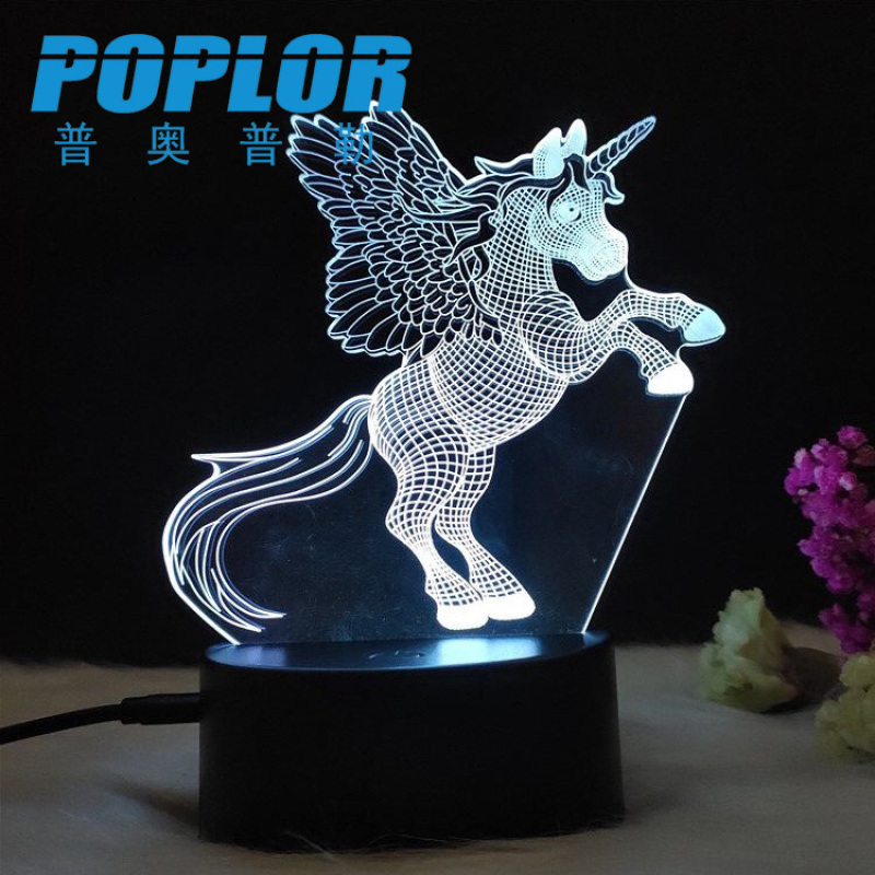 LED七彩3D小夜灯 亚克力新奇特LED灯 创意礼品摆件APP遥控款底座