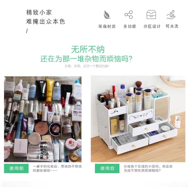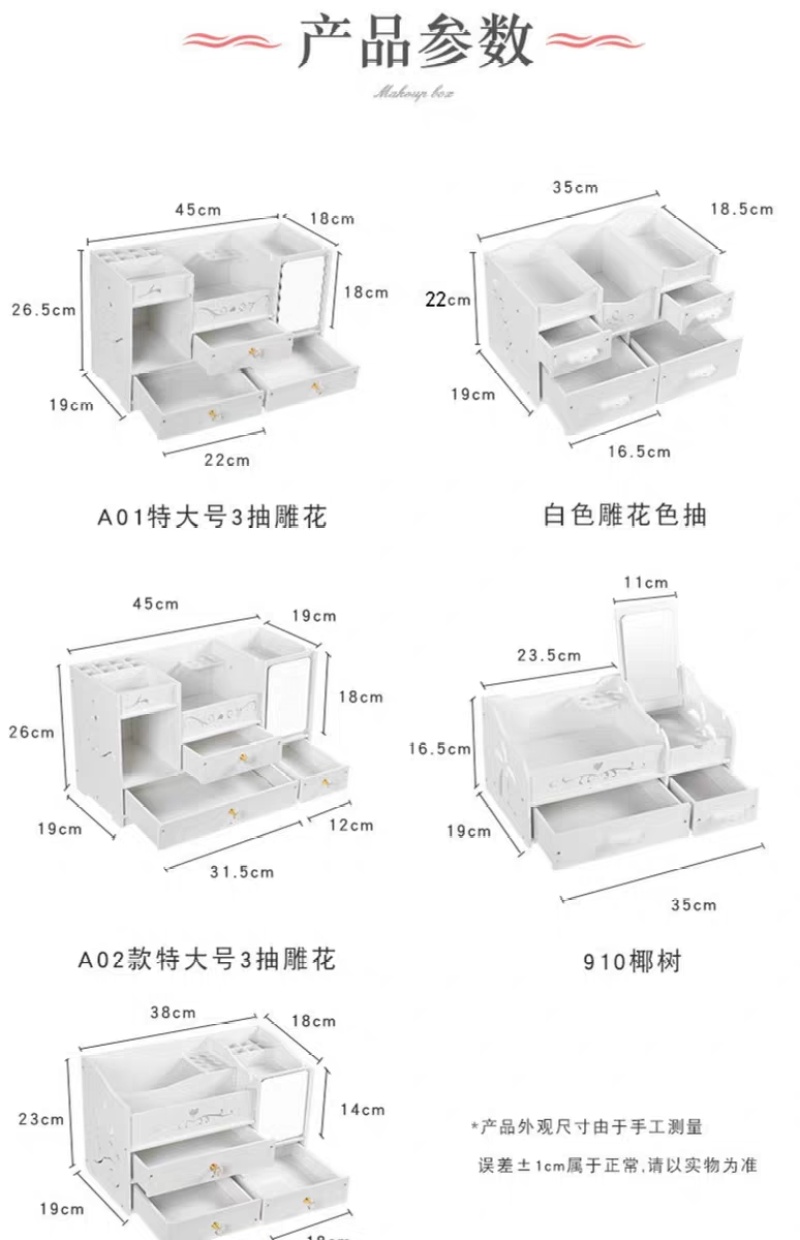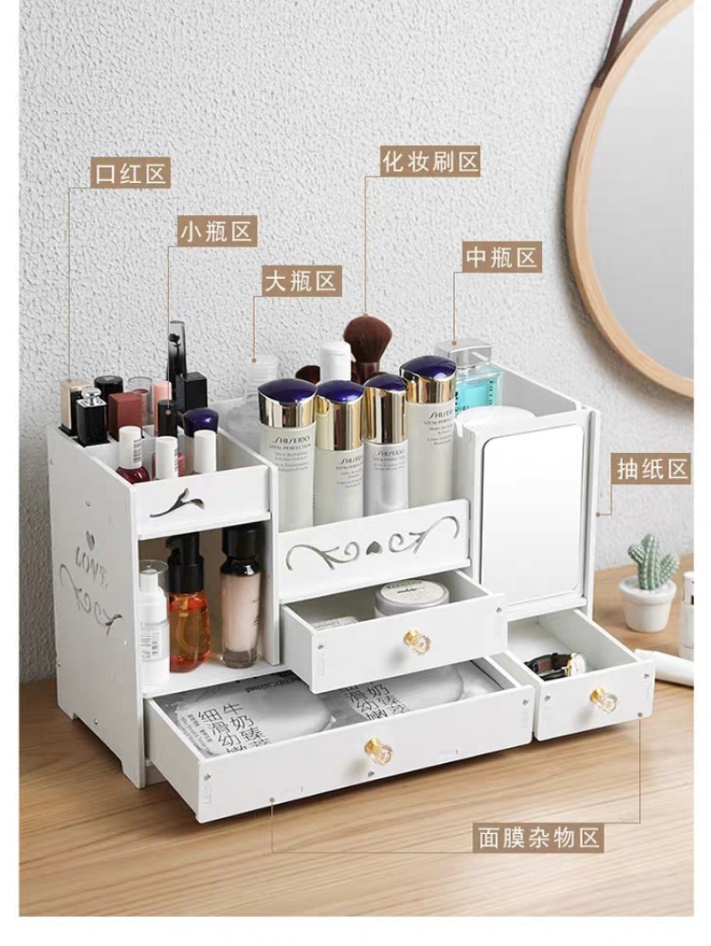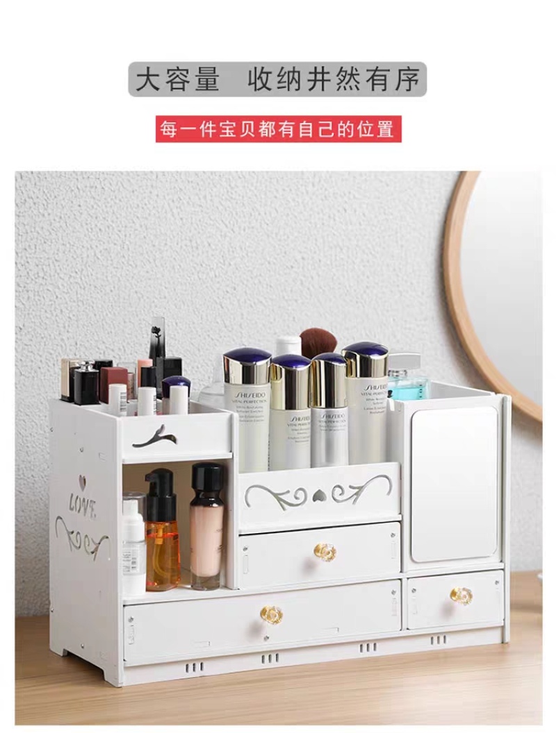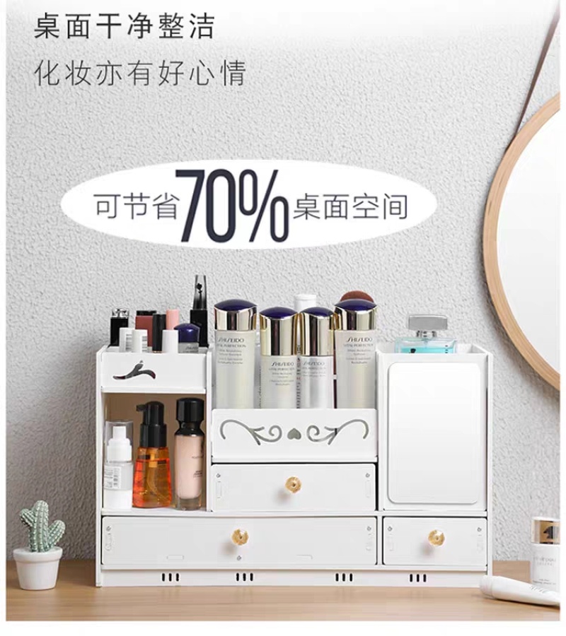 化妆品收纳盒带镜子大容量简约家用护肤品梳妆台置物架ZW2701