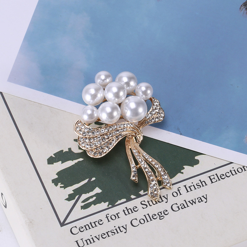 时尚花朵胸针 女士服饰众星捧月镶钻珍珠胸花服饰配饰