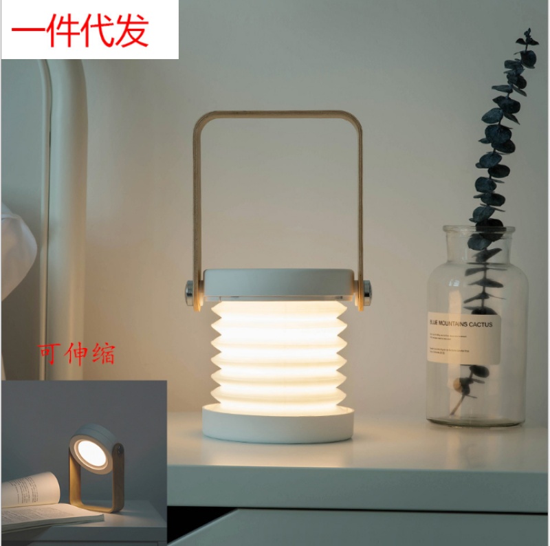 跨境木手柄手提灯笼灯 可伸缩折叠led台灯 usb充电小夜灯阅读灯