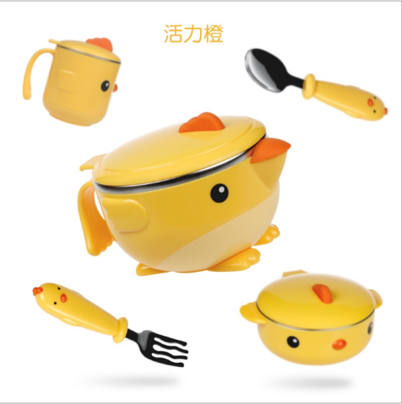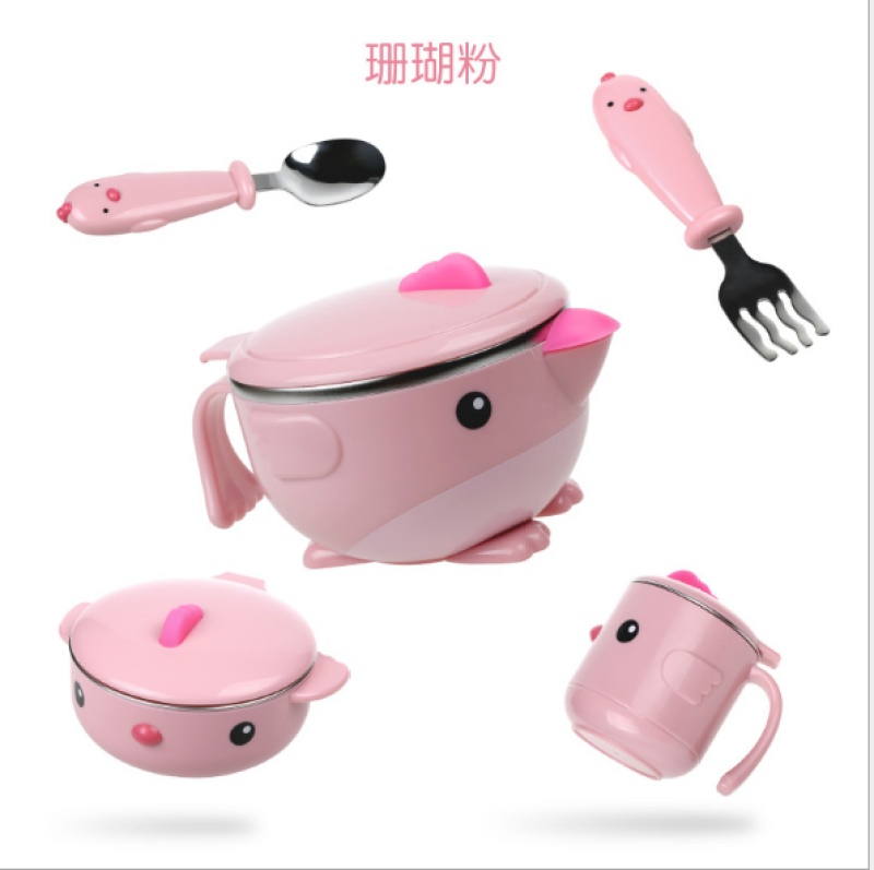 宝宝儿童餐具套装注水碗吸盘不锈钢碗勺叉子水杯防摔防烫保温辅食