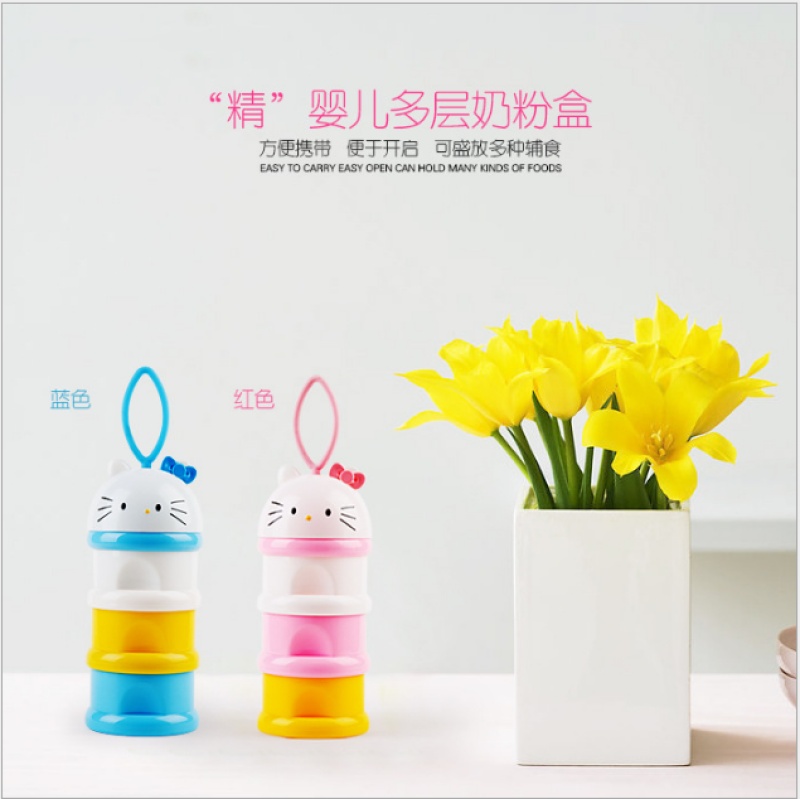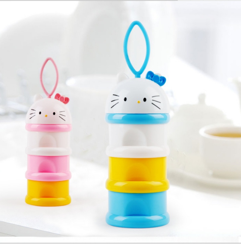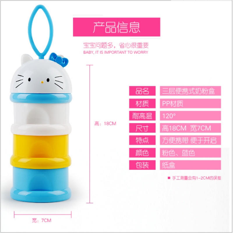 卡通婴幼儿奶粉盒便携式奶粉格储存盒大容量三层分装盒独立开口