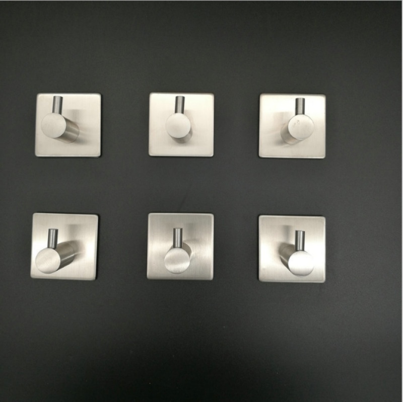 厨房门后墙壁粘钩挂钩 不锈钢方底L型金属无痕挂钩粘钩 货架挂钩