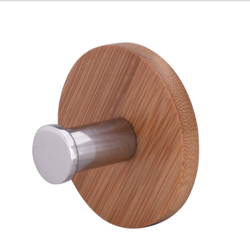 竹木不锈钢挂钩 无痕免钉粘胶创意浴室厨房门后粘钩圆竹木T型单钩