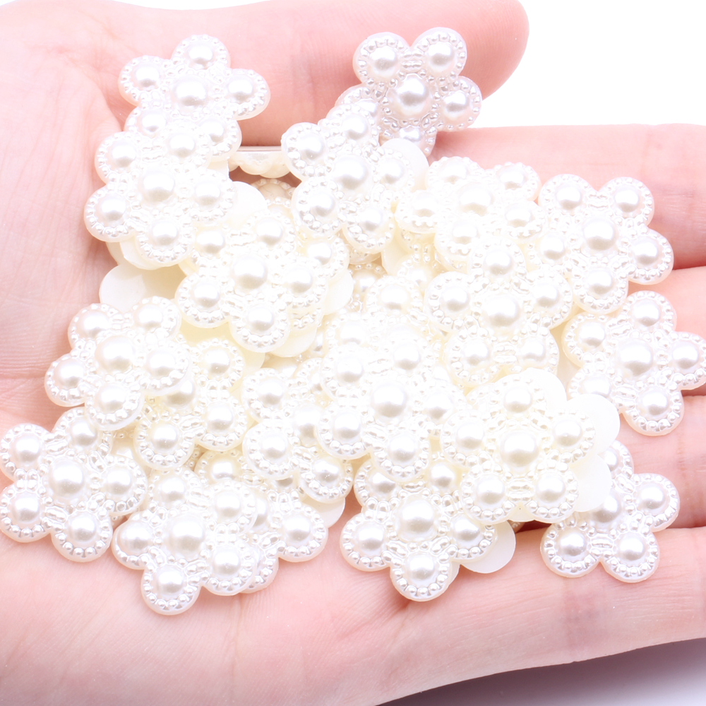 五瓣花18mm1000/25颗纯白米白半面珍珠DIY手机美容服装配件
