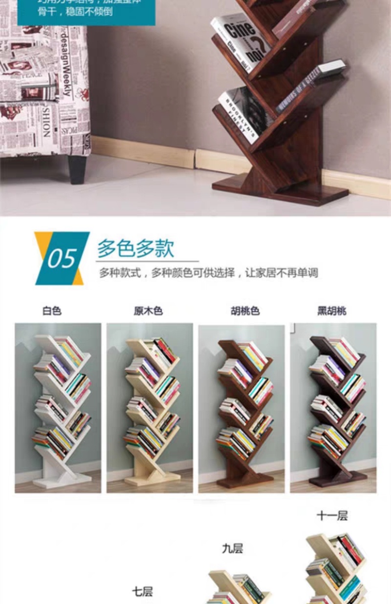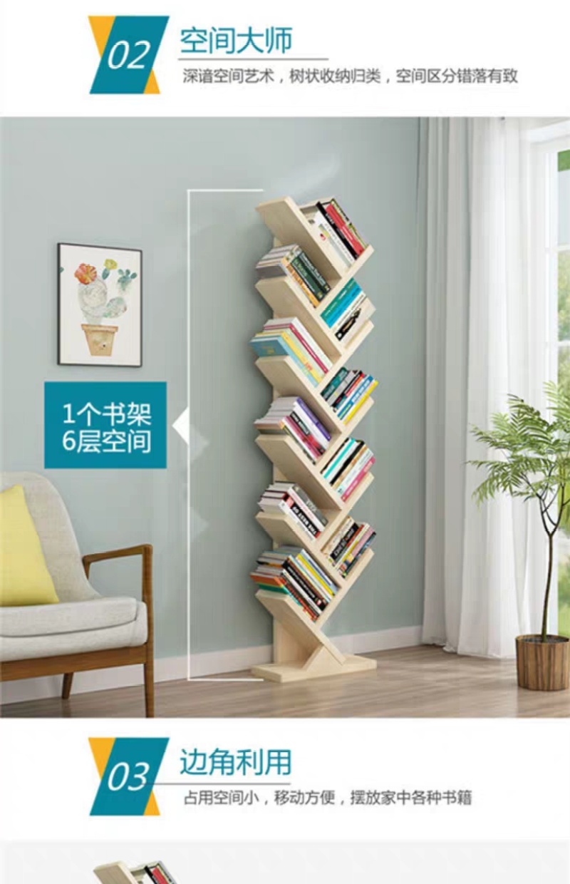 书架落地简约创意学生树形经济简易小书柜收纳家用省空间HL1707