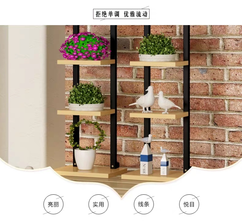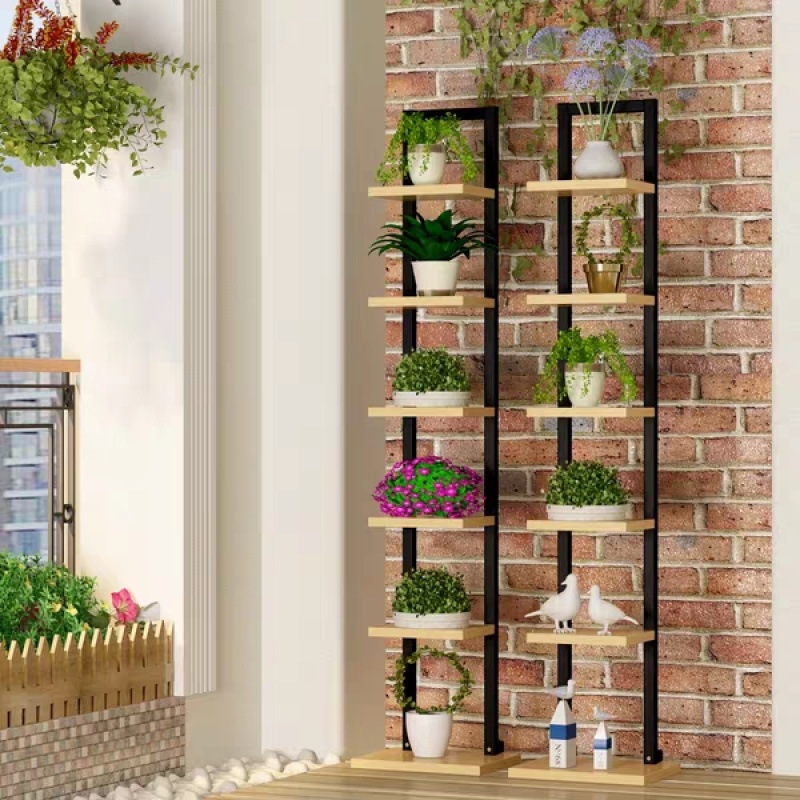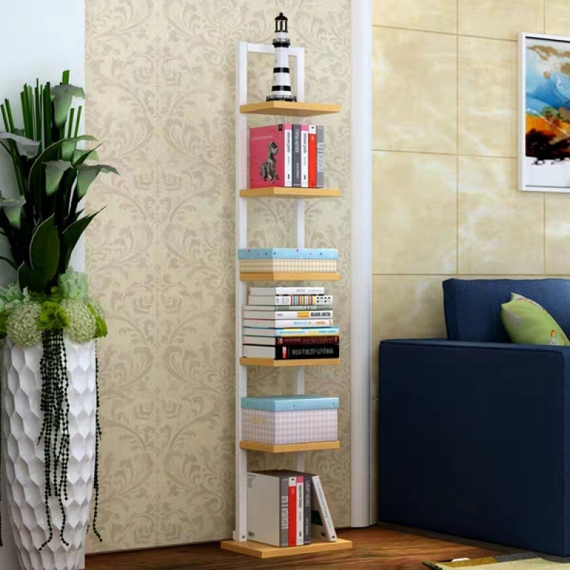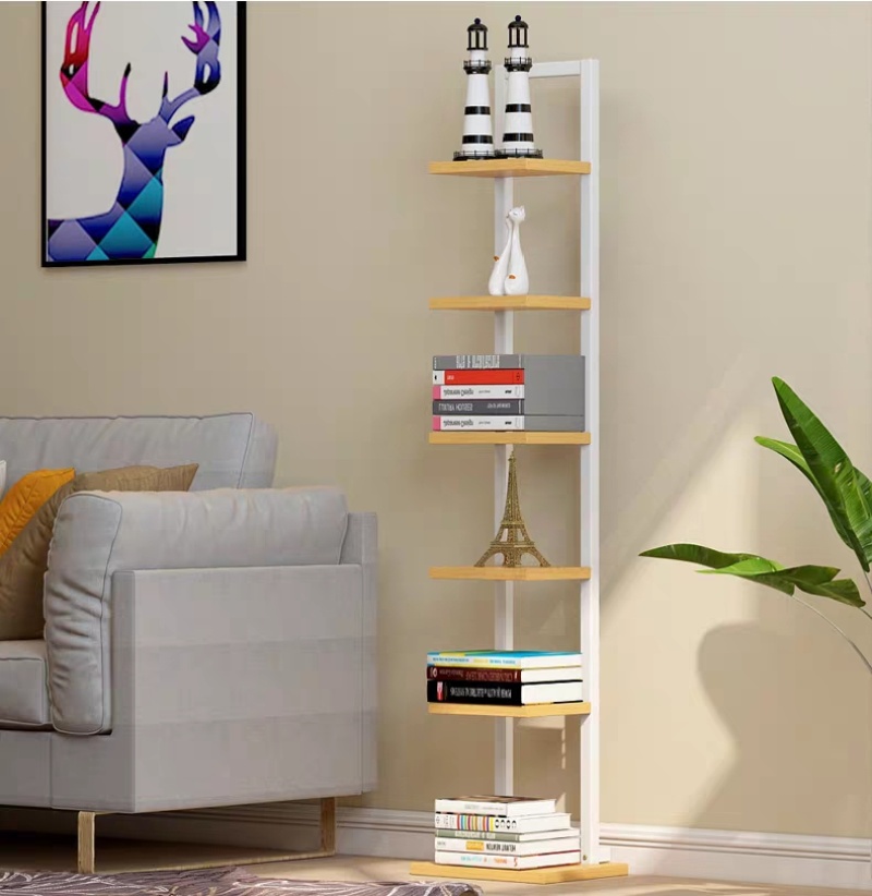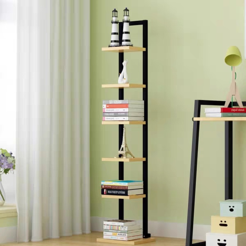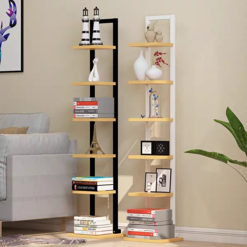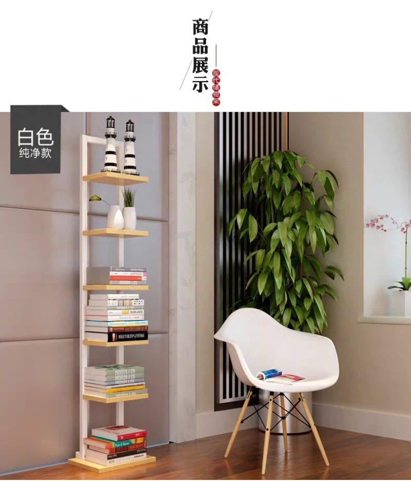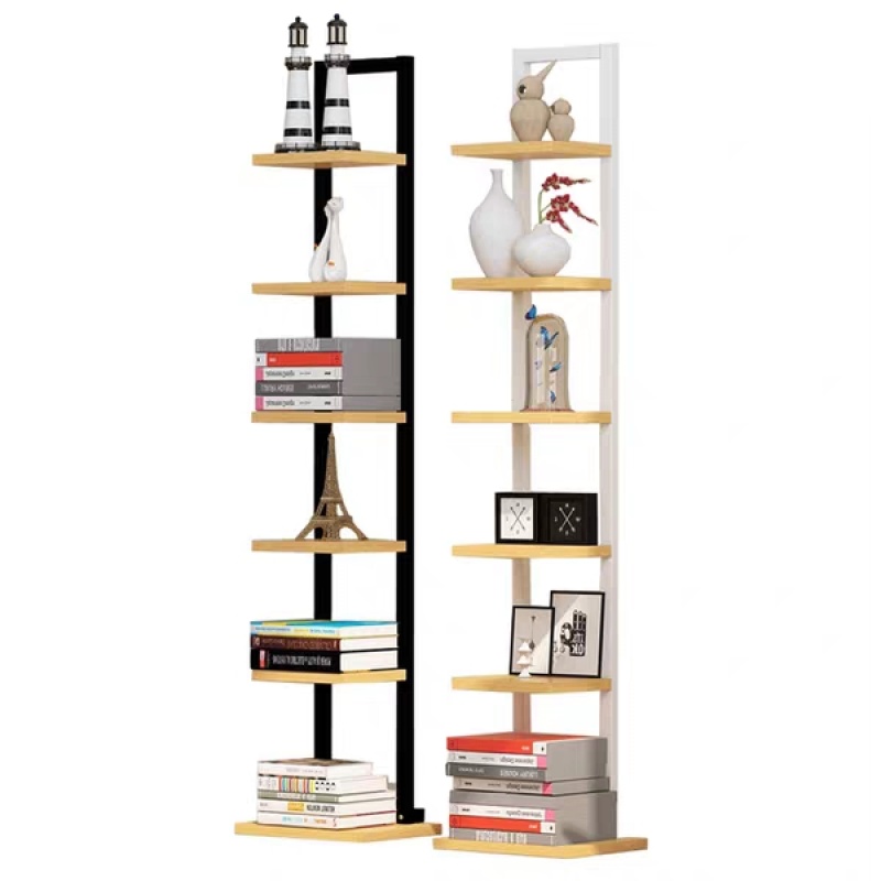 一字置物架简约七层书架小钢木架落地花架客厅卧室墙角装饰架A30