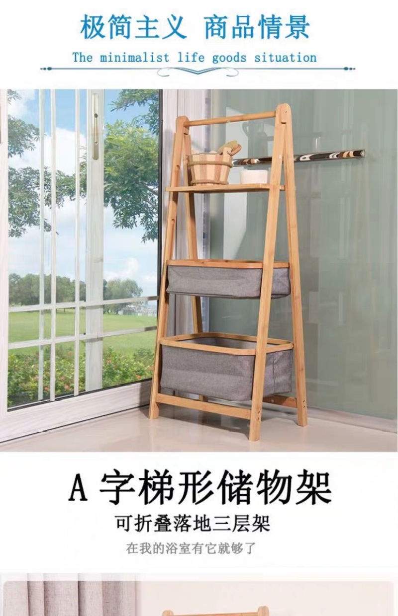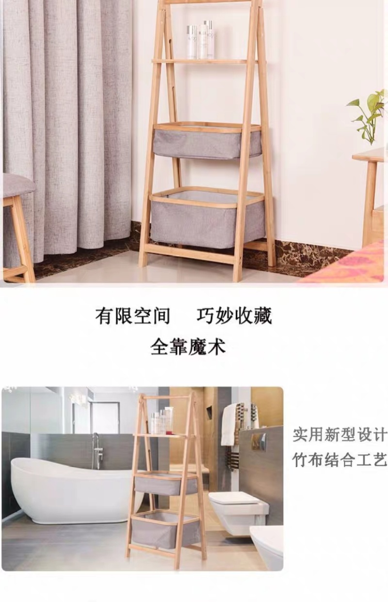 浴室卫生间落地置物架家用收纳篮脏衣篮家用布艺收纳架A119