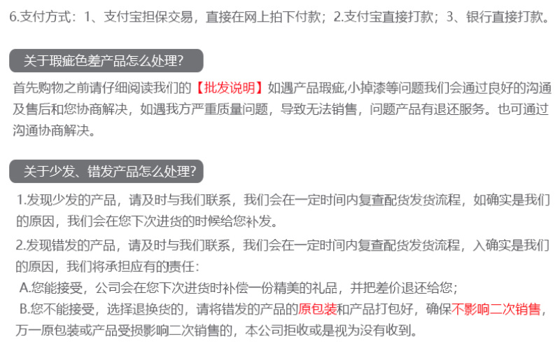 起订量:单款1件或是件的倍数起订(1个一件) 发货时间:订单确认款付后15个工作日发货! 温馨提示:详情如有疑问,请咨询客服。