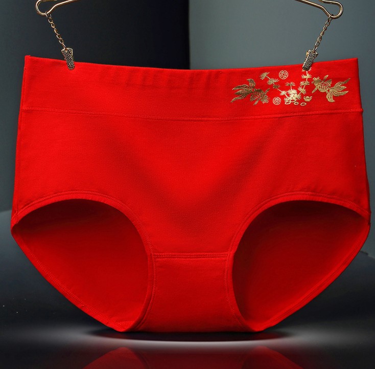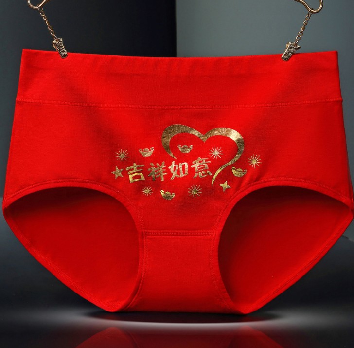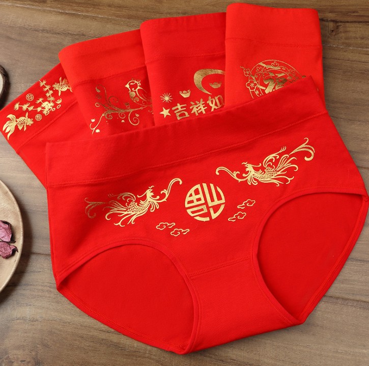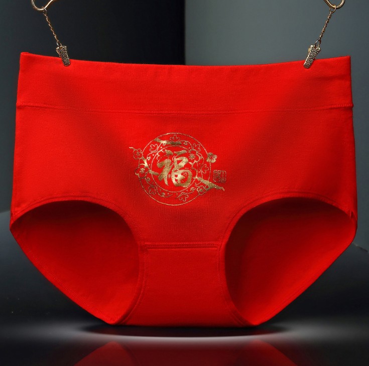 本命年大红纯棉内裤 烫金印花纯棉中腰内裤 中腰喜庆内裤