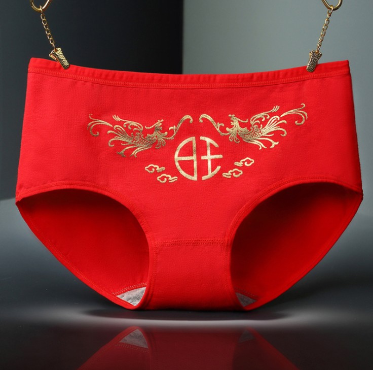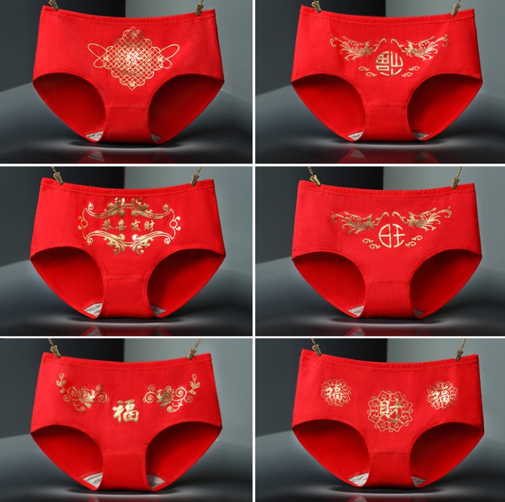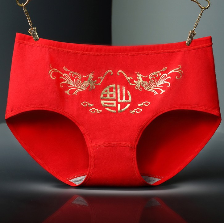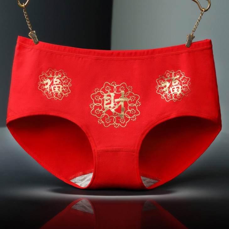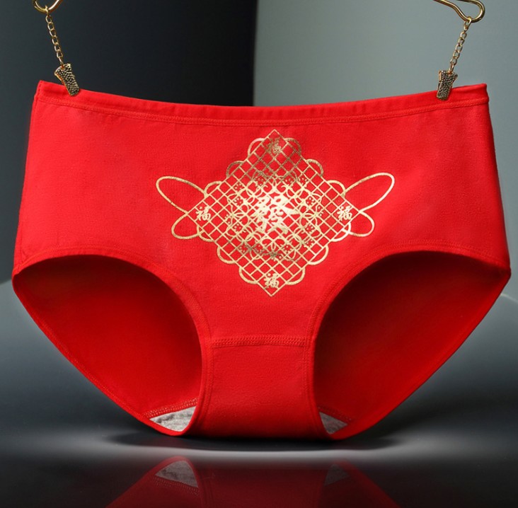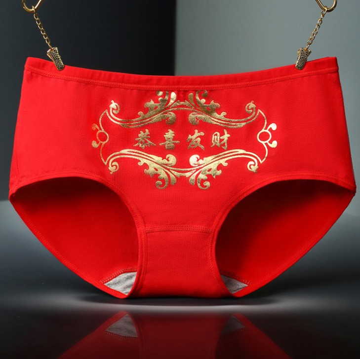 本命年女士纯棉大红内裤 烫金印花本命年内裤 婚庆大红内裤