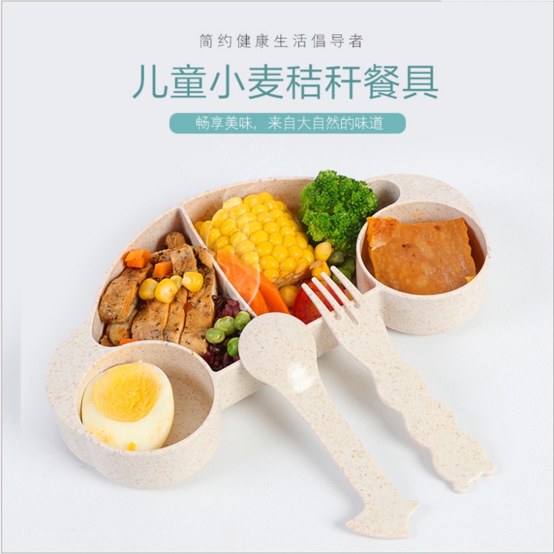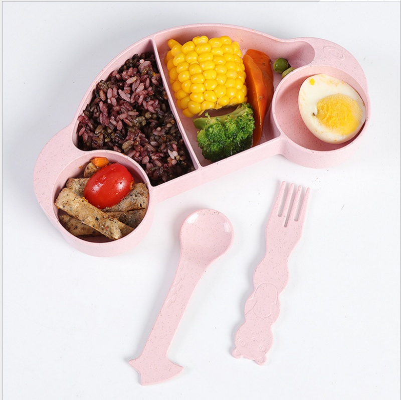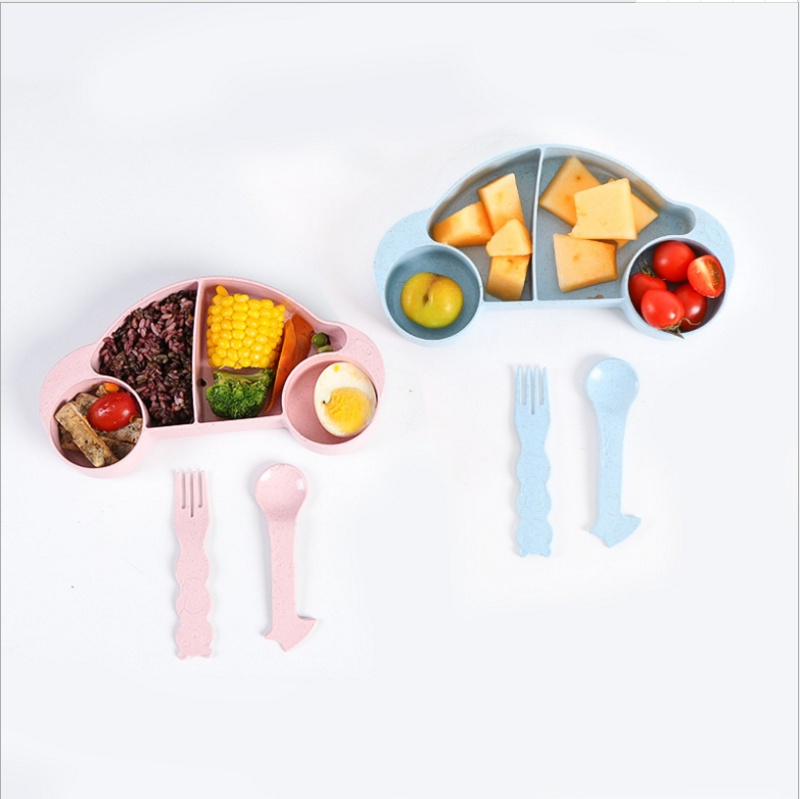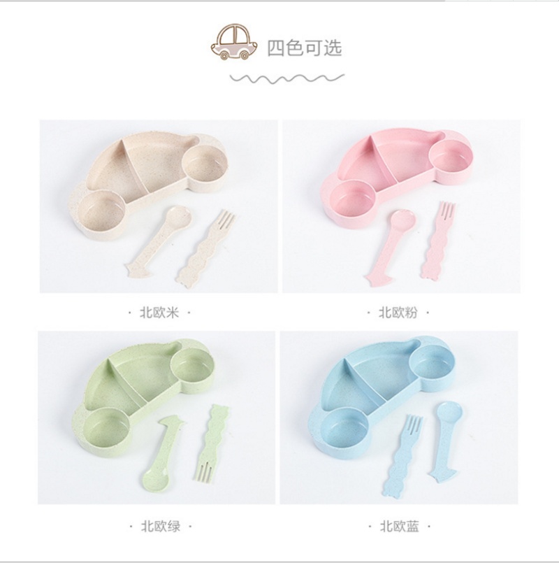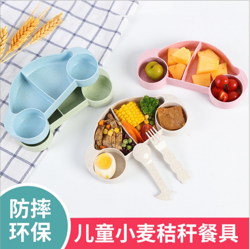 小麦秸秆儿童汽车餐盘 餐碟 宝宝餐具分隔盘套装配叉勺