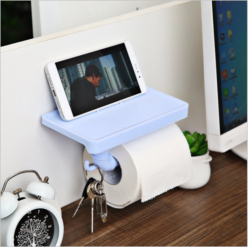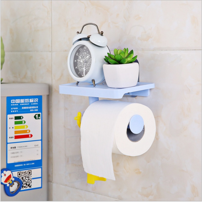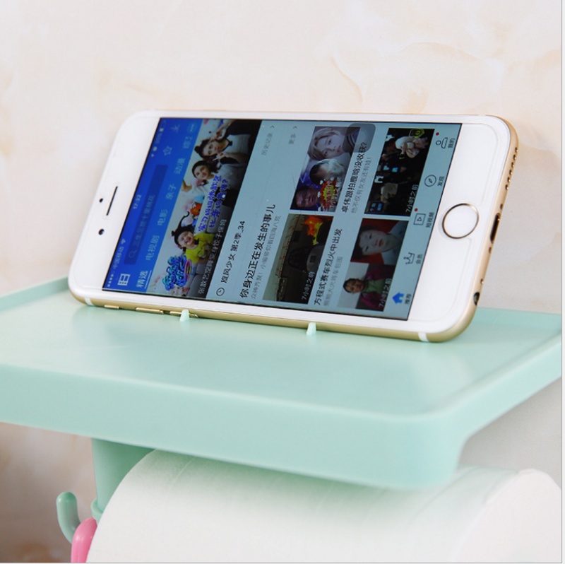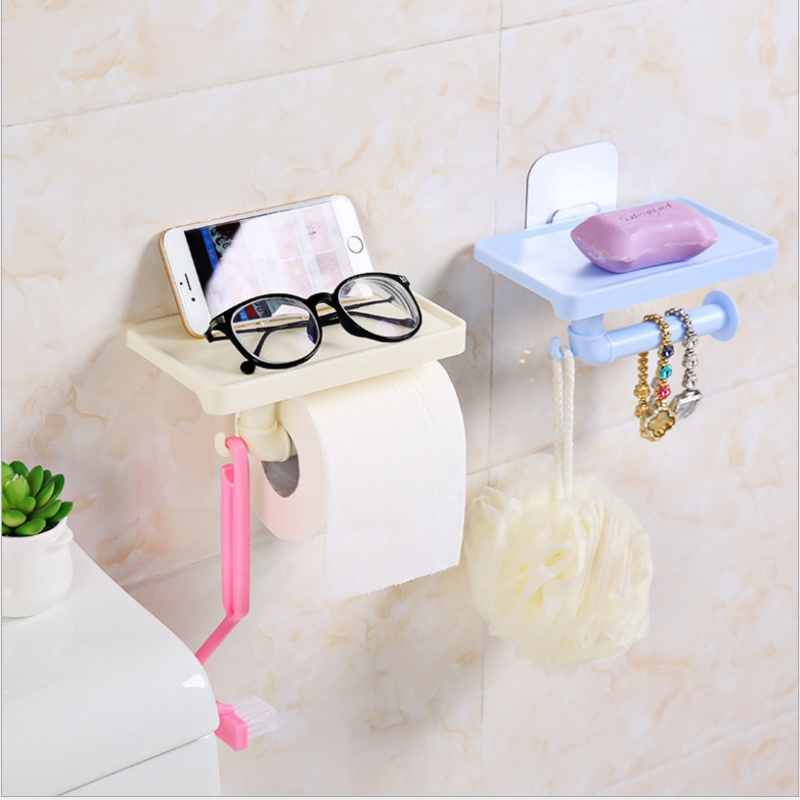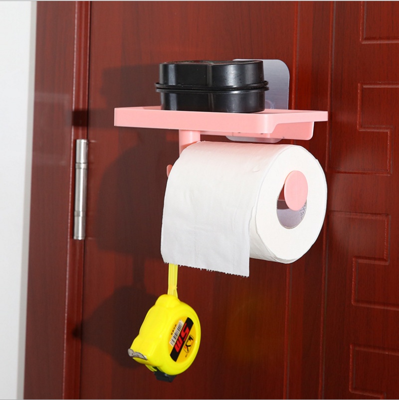 创意无痕贴 多功能纸巾架 卷纸器 置物台 带挂钩厕纸盒